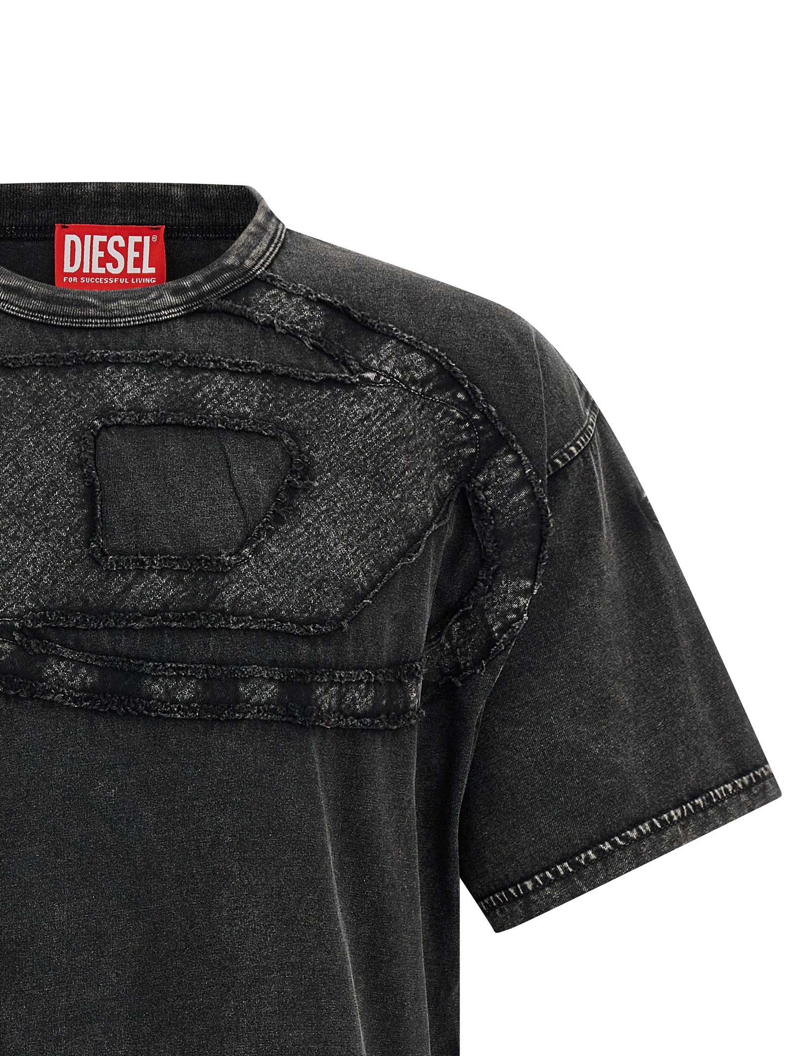 'T-Boxt-Den' garment-dyed and acid-washed cotton jersey t-shirt for a lived-in and textured effect, maxi tone-on-tone 'Oval D' patch on the front, crew neck, short sleeves with dropped shoulders.