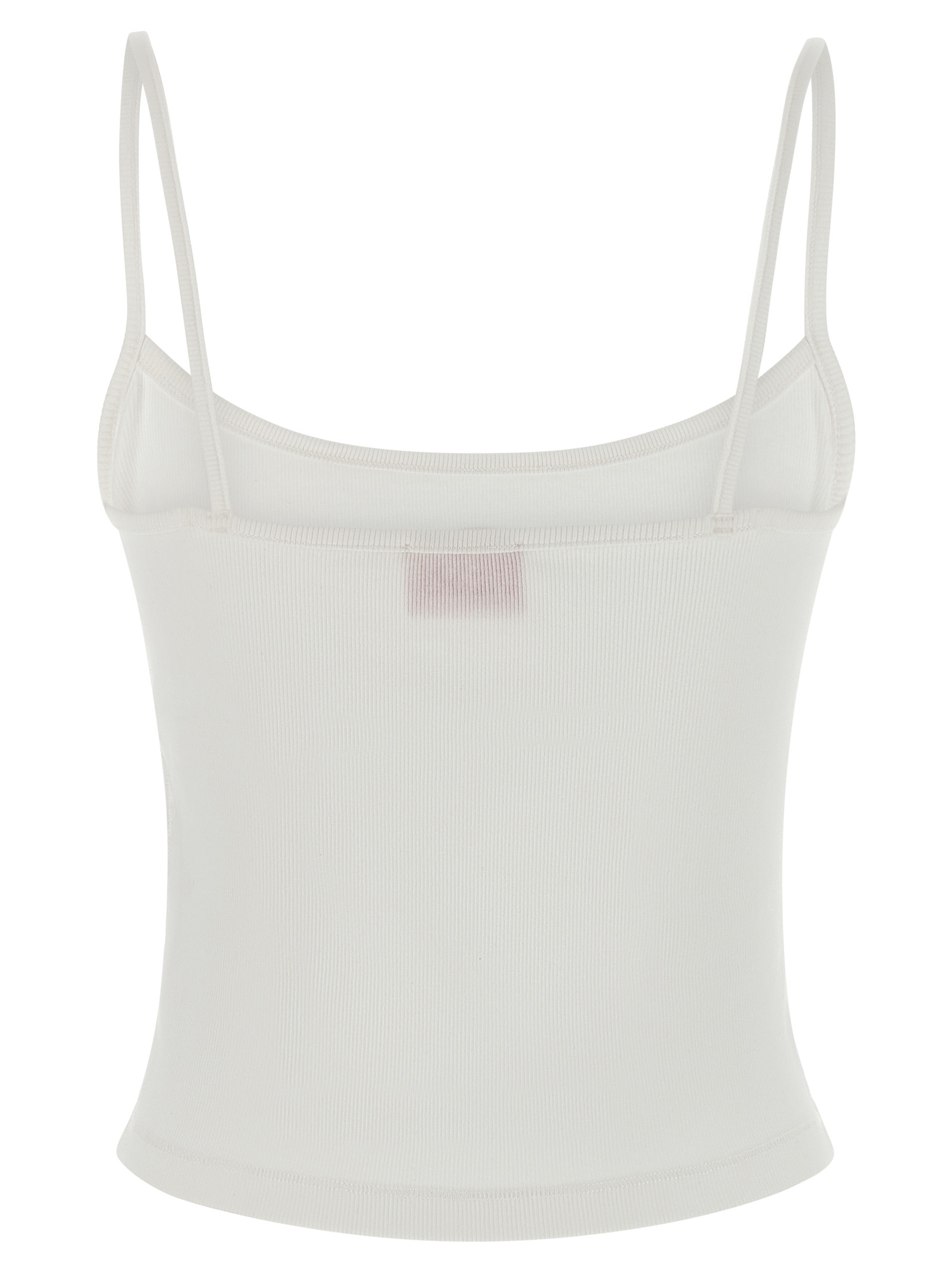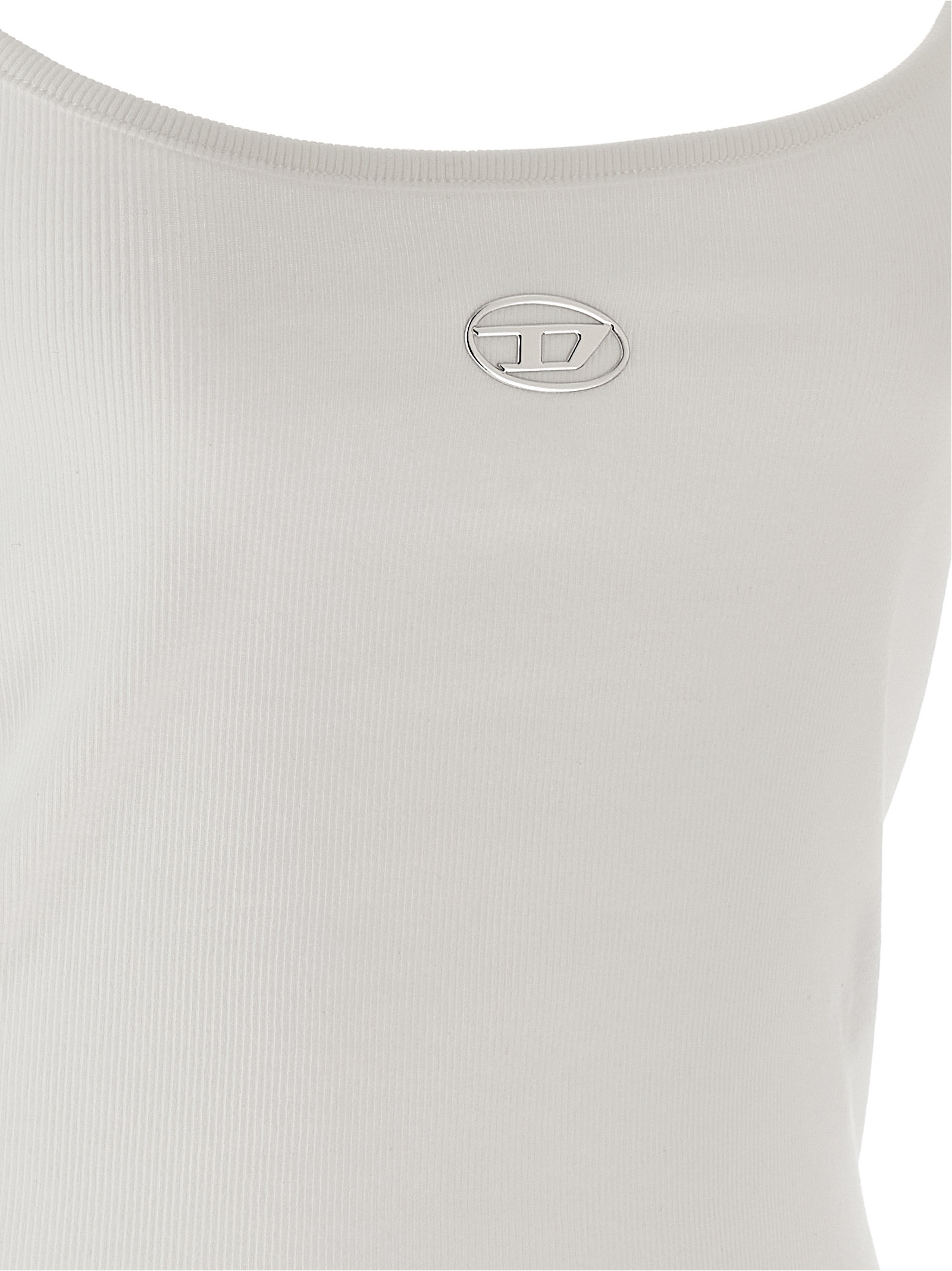 'T-Hupy-Od' top in fine-ribbed stretch cotton, slightly cropped metallized 'Oval D' logo with embossed injection molded on the front, wide neckline at the front and back, and thin straps.