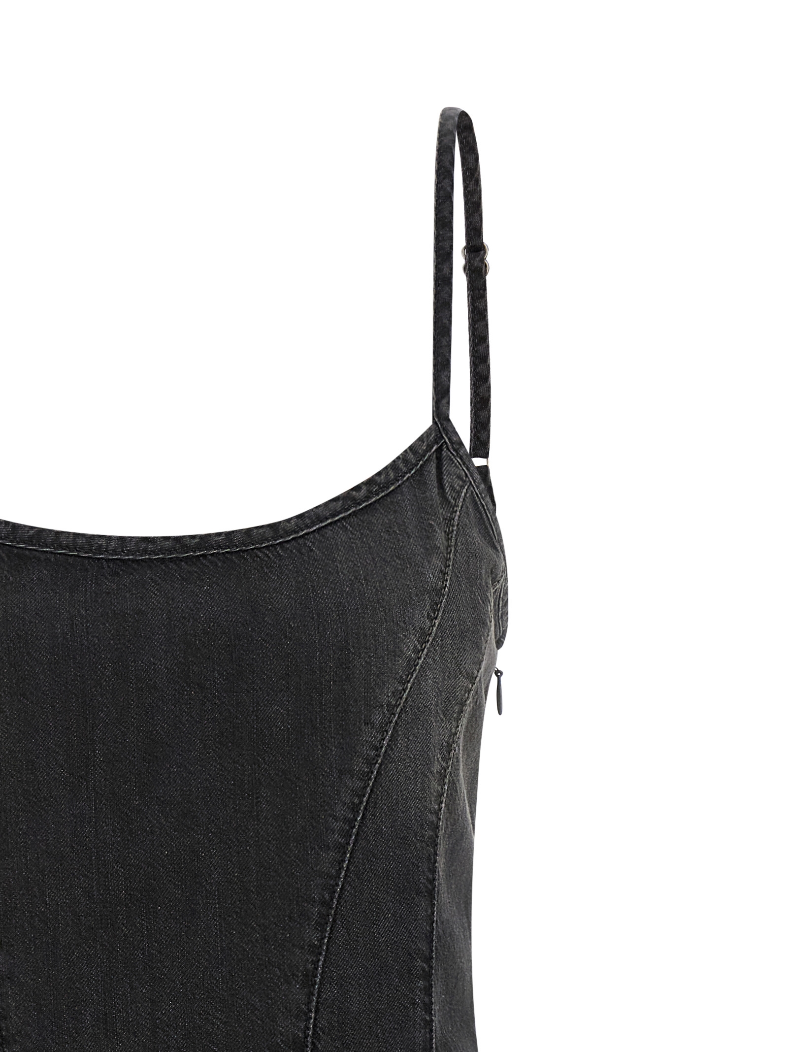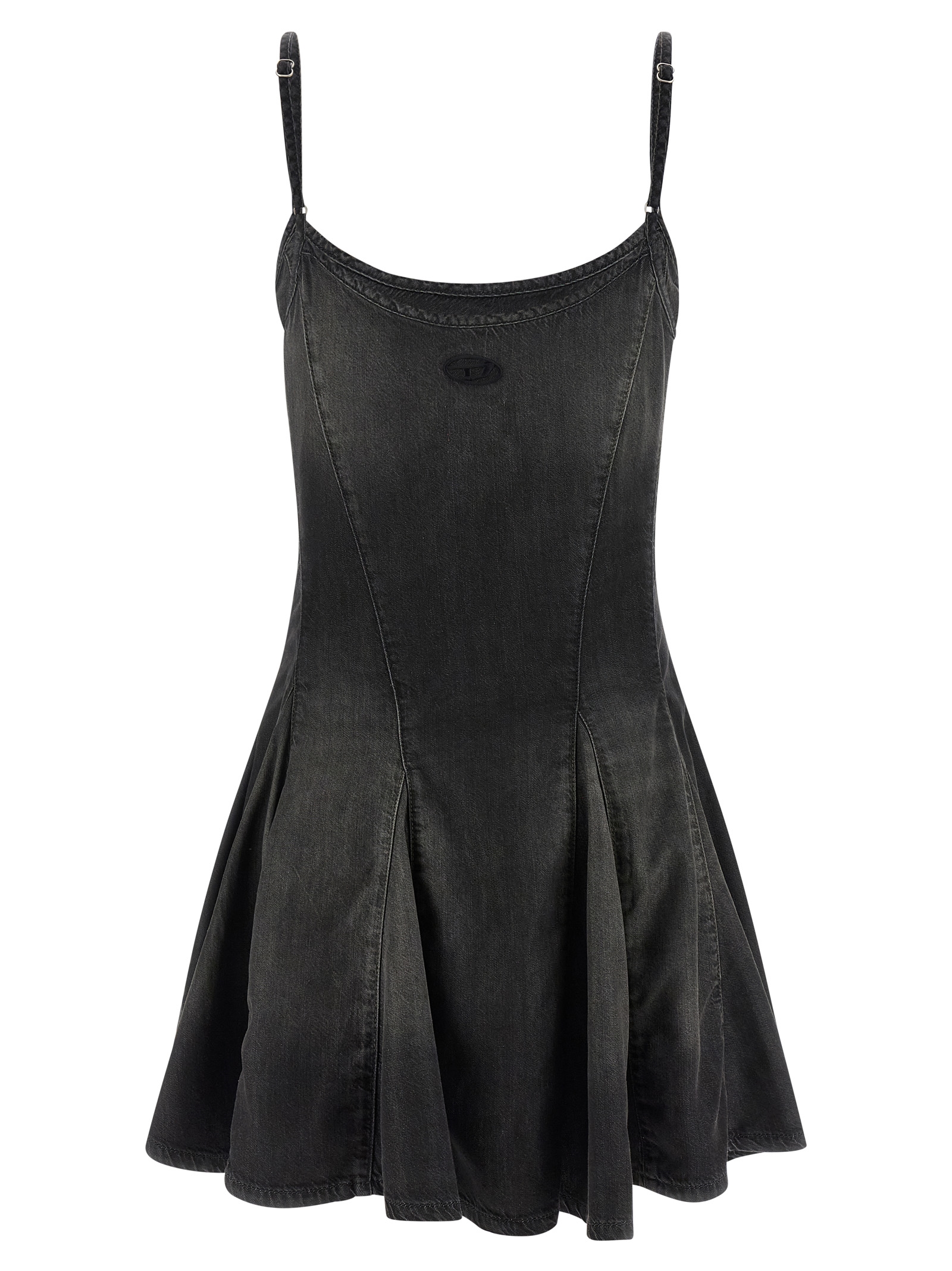 Mini 'De-Spoky-S' dress in cotton denim and TENCEL™ Lyocell with stonewashed treatment, panel construction, full skirt, thin adjustable straps, round neckline at the front and back, Oval D cut-out logo embroidery at the back, side zip closure.