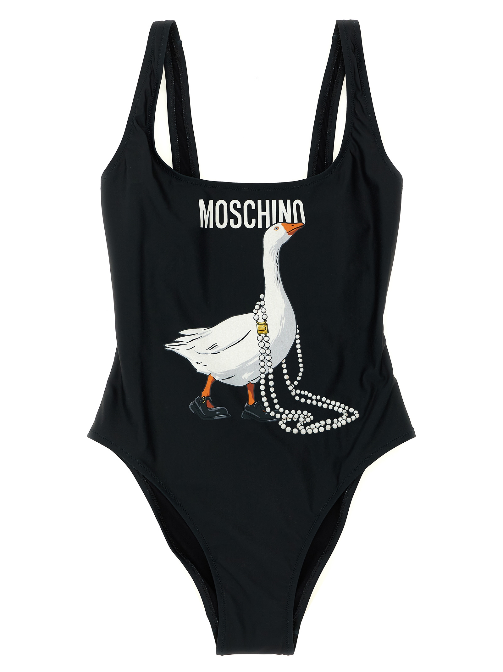 Слитный купальник из лайкры с принтом «Гусь» спереди и широким круглым вырезом спереди и сзади. Коллекция Resort.