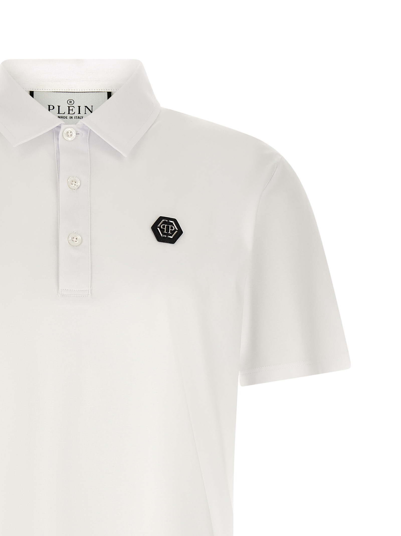 'Classic' cotton jersey polo shirt with front 'Hexagon' patch, collar and buttons, short sleeves, side slits.