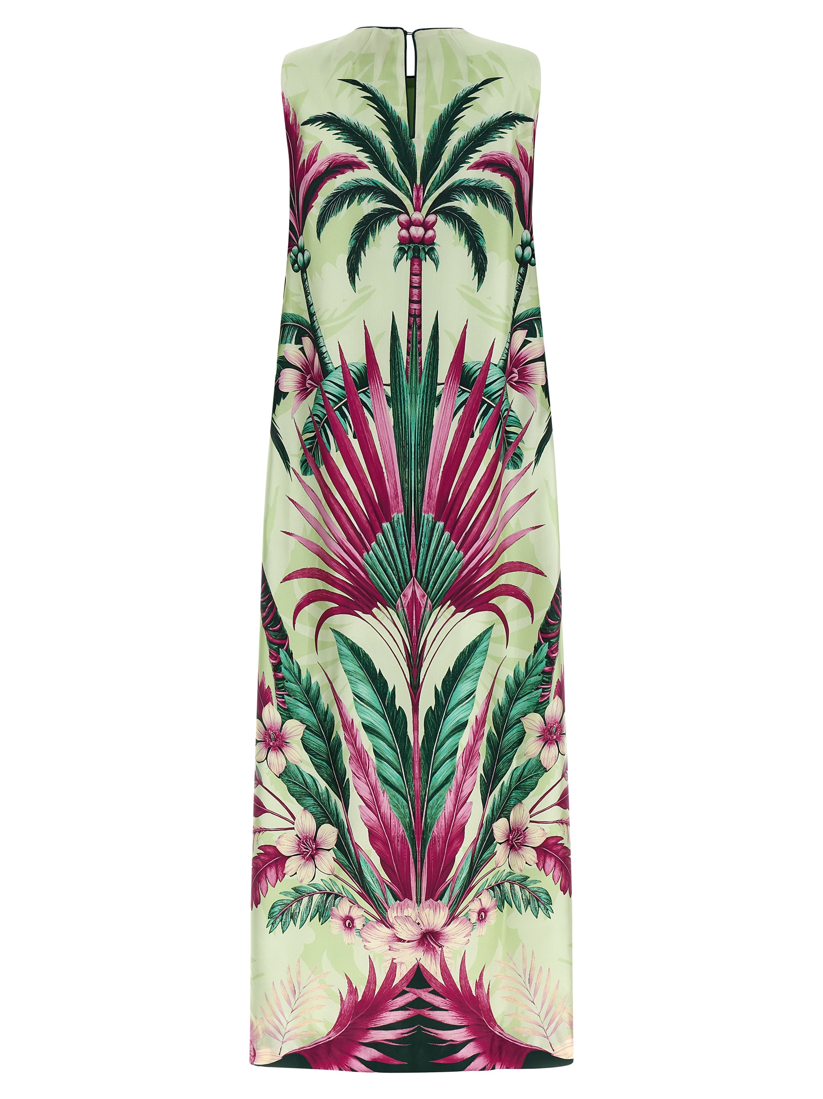 Long 'Penelope' dress in 'Palm bouquet' print silk twill, flared silhouette, crewneck with back button closure and cut-out teardrop detail, sleeveless, sides with wide slits and buttons.Характеристики товара
