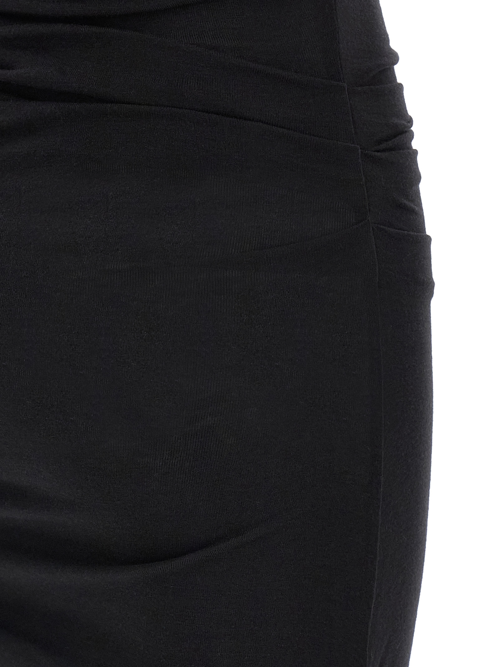 Midi dress in light semi-transparent jersey, square neckline and tone-on-tone logo embroidery on the front, sleeveless, side drapes.