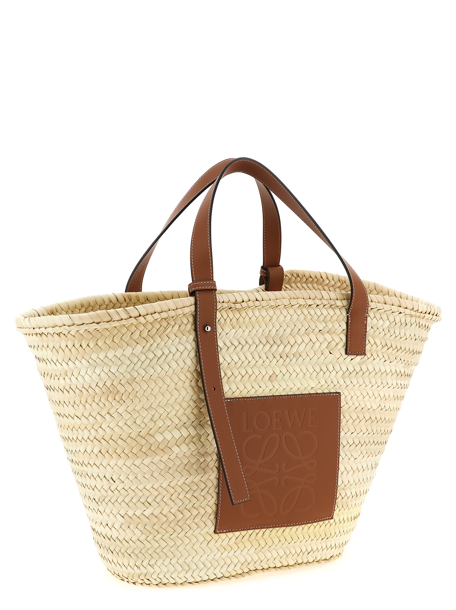 Large 'Classic Basket' shopping bag made with hand-woven palm leaves and contrasting smooth leather, leather patch with embossed Anagram LOEWE pattern, double adjustable handle. Handcrafted product, any imperfections are to be considered characteristics of uniqueness.