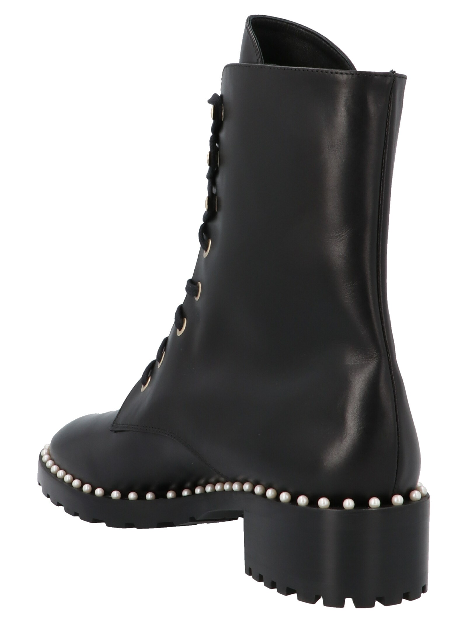 Stuart Weitzman 'Allie' lace-up boots, gold hardware, embedded pearls, rubber sole. This product is made in leather, any visible grains are to be seen as features of the material.Характеристики товара