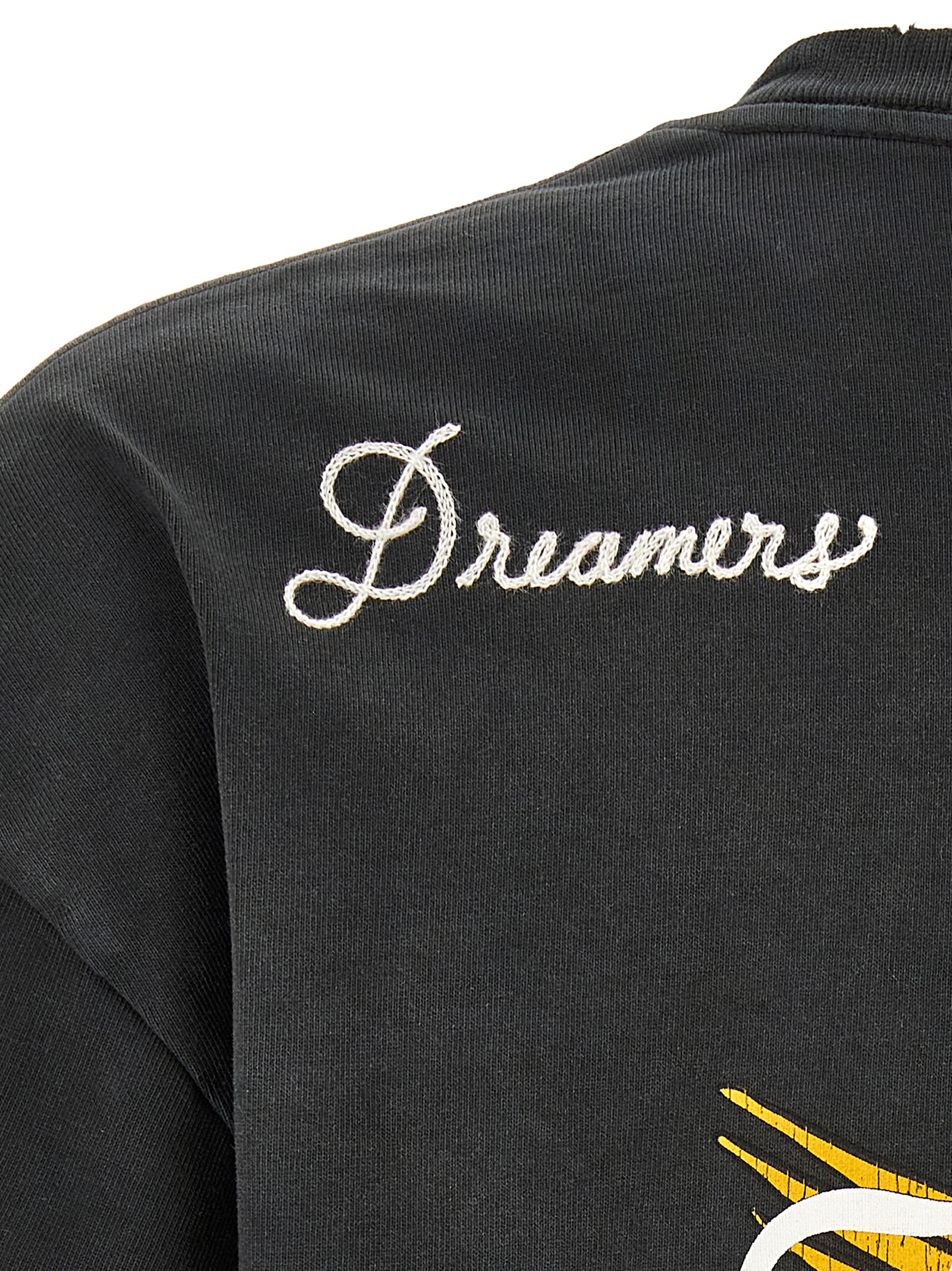 'Crystal Eagle Tee' used-effect cotton crew neck t-shirt with embossed print on the front and back,