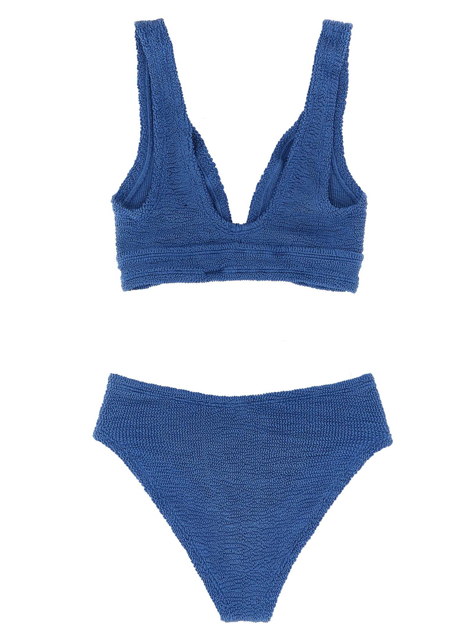 The Original Crinkle™ Angel fabric bikini consisting of under-breast band top, V-neck front and back, full breast support and V-waist bottoms.