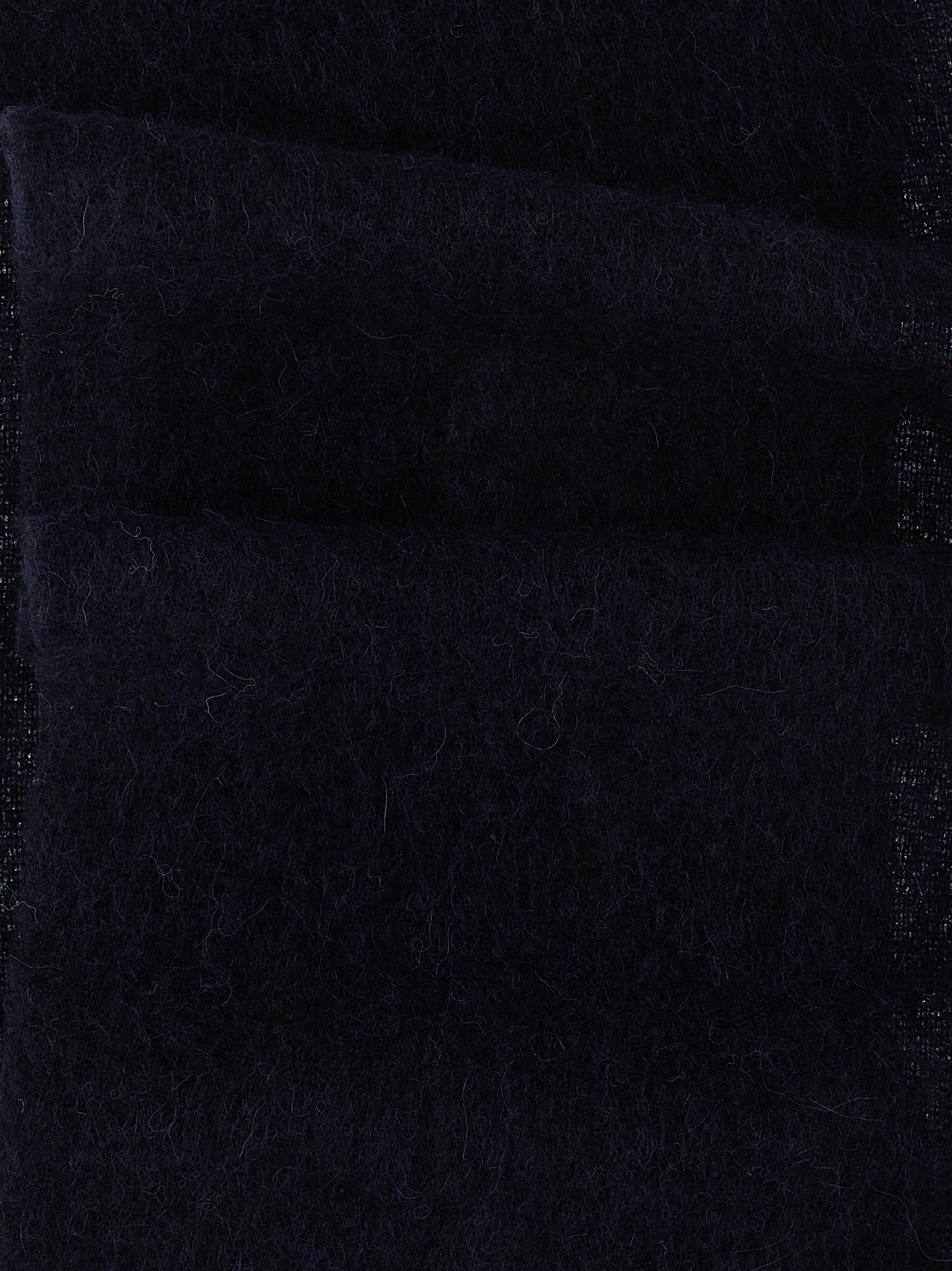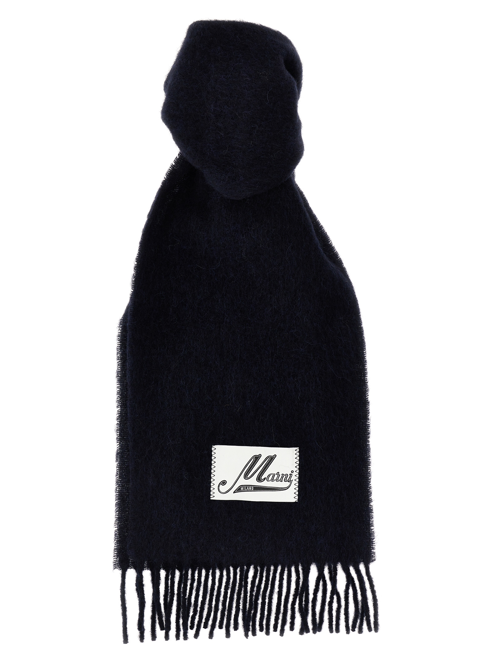 Wool blend scarf with fringes at the edging and a maxi logo patch.