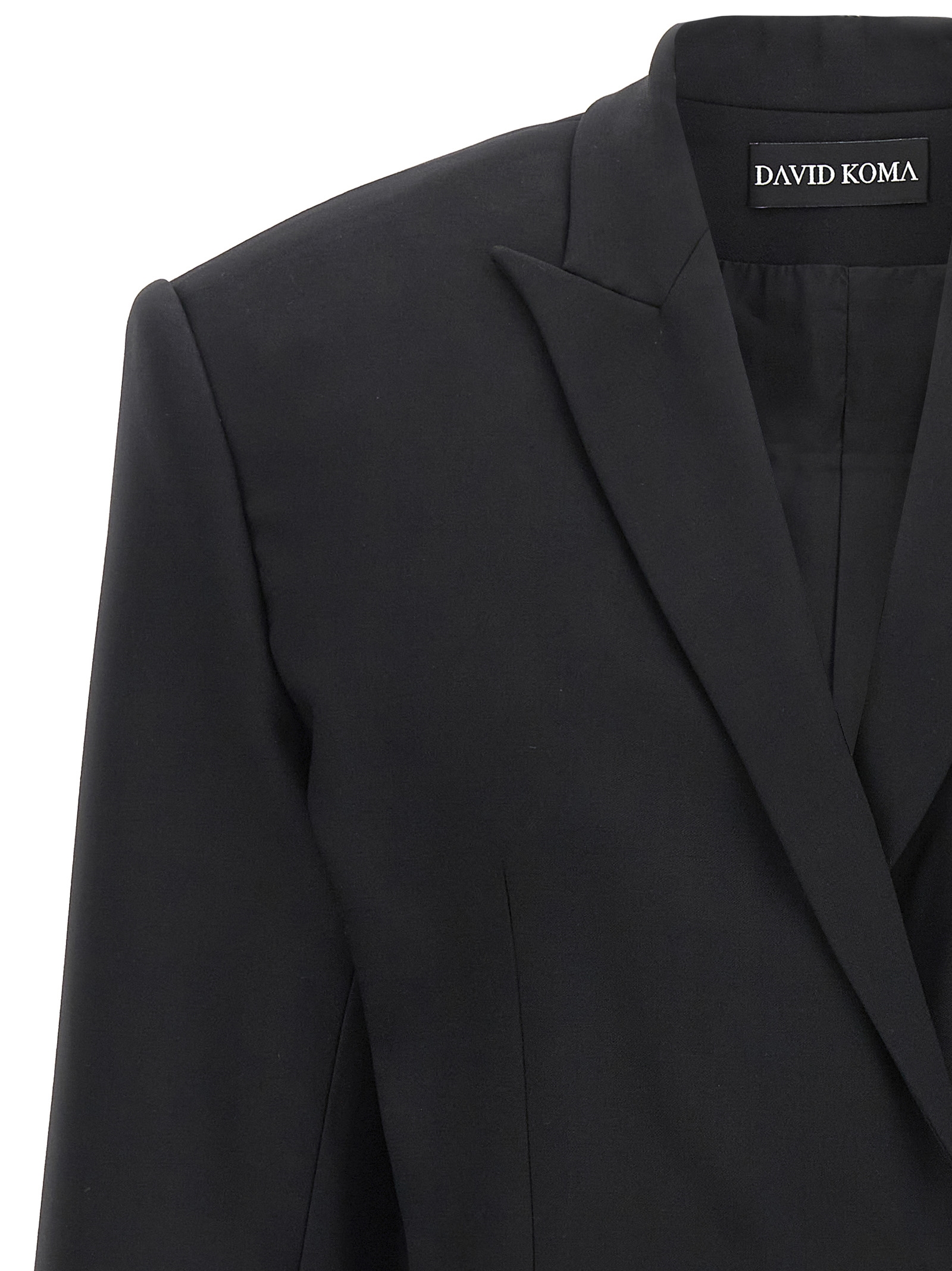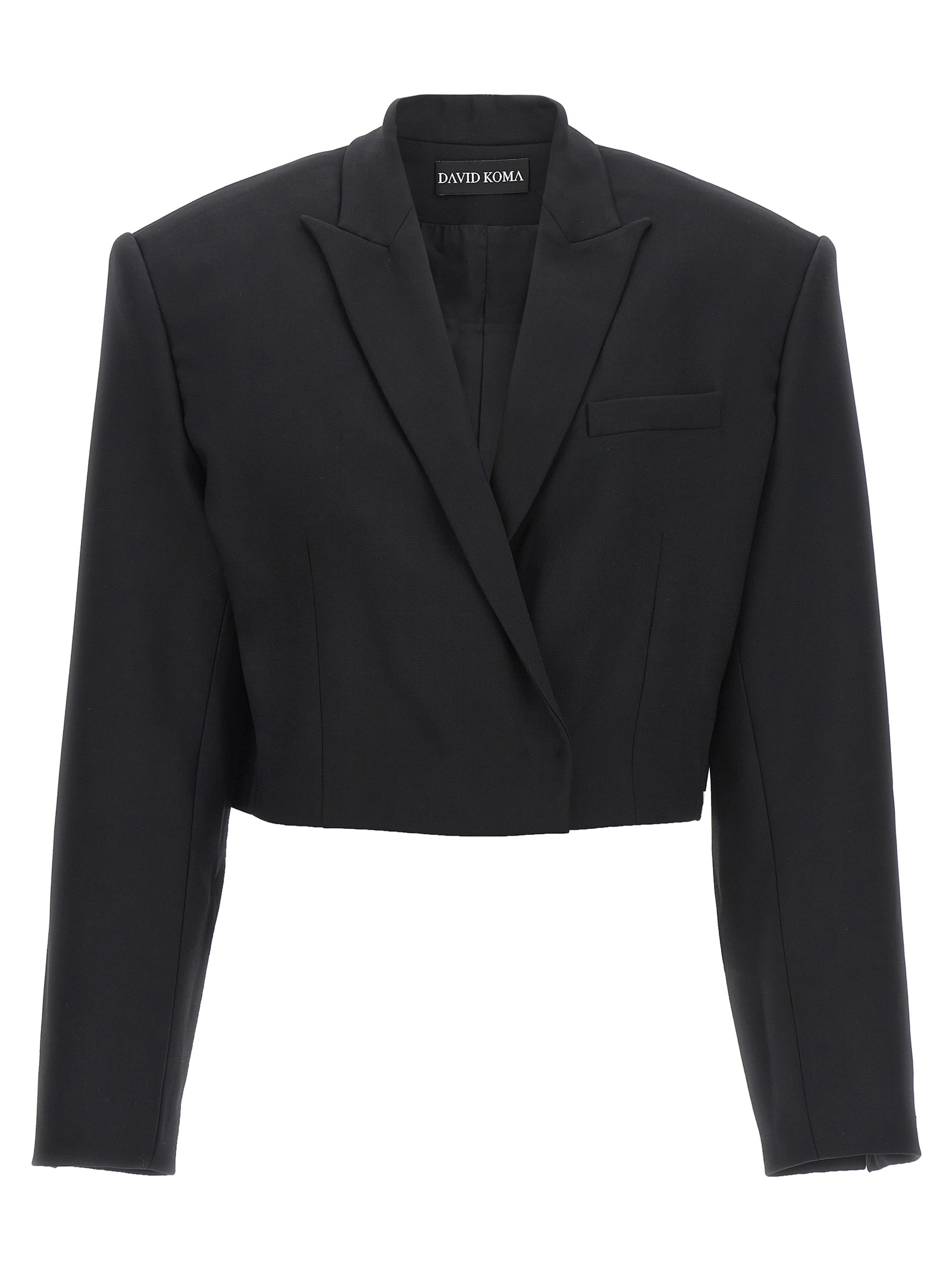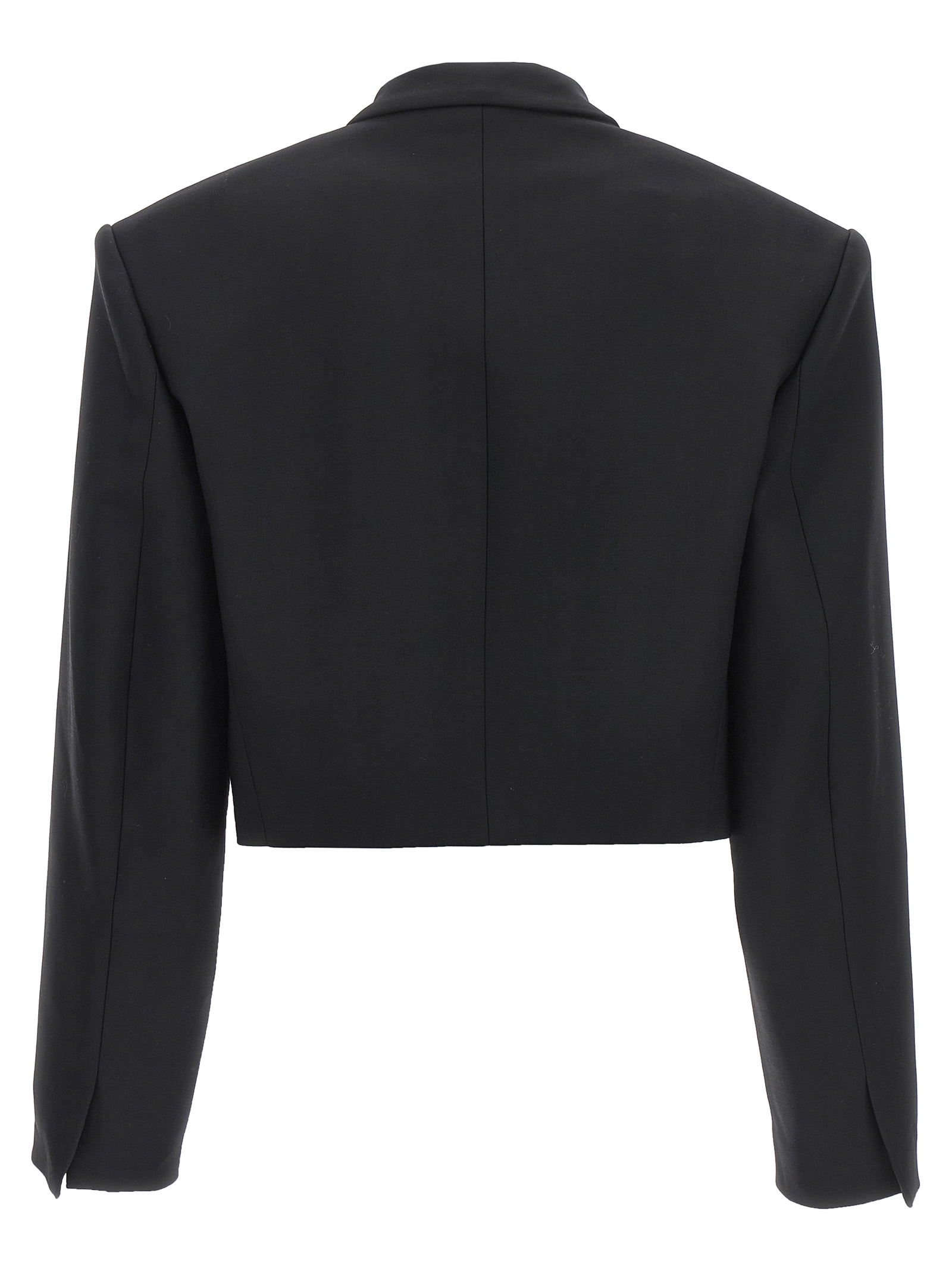 'Cropped' single-breasted stretch wool blazer with button closure and long sleeves.