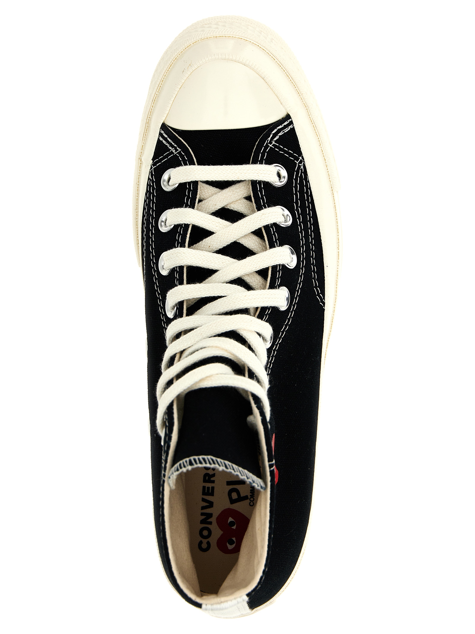 Comme des Garçons Play x Converse canvas sneakers with contrast 'Heart' print, laces and rubber sole.