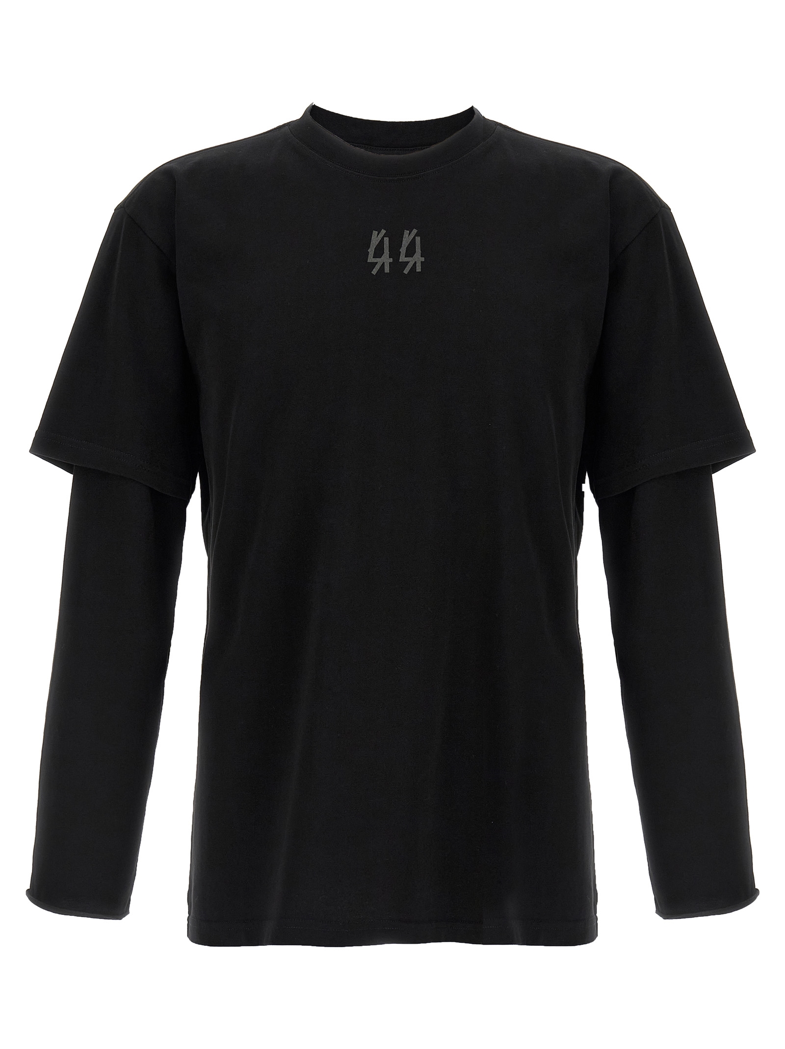 'Classic Double Sleeve' cotton jersey T-shirt with front and back print, crew neck, long and short double layer sleeves with dropped shoulders.