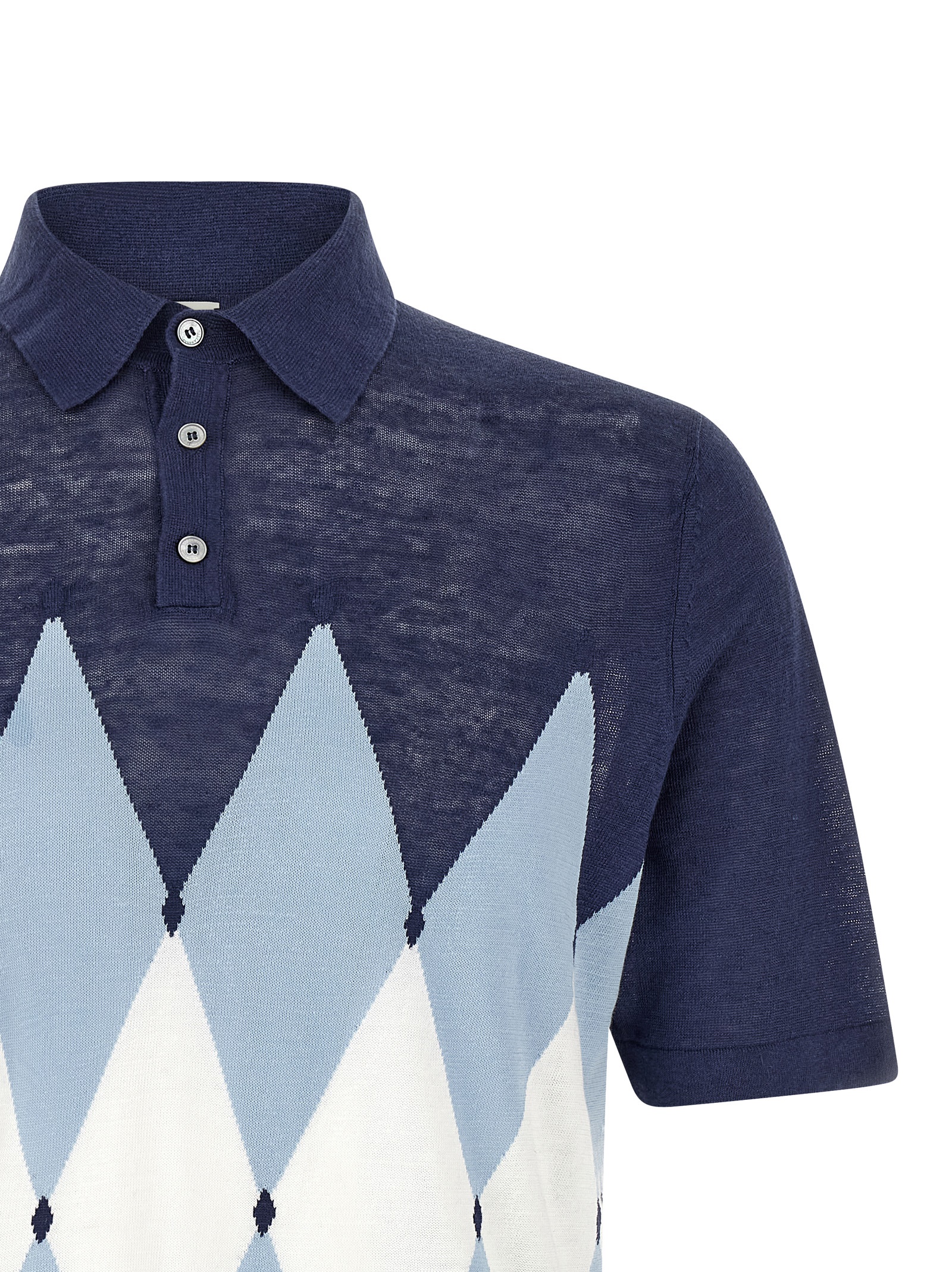 Polo shirt in linen and cotton blend with front Argyle jacquard pattern, collar and buttons, short sleeves.