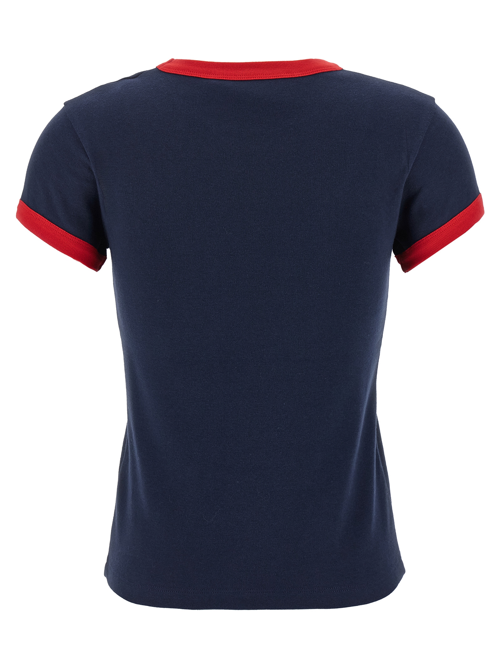 Cotton jersey T-shirt with contrasting details, front 'Chez Valentino' print, crew neck, and short sleeves.