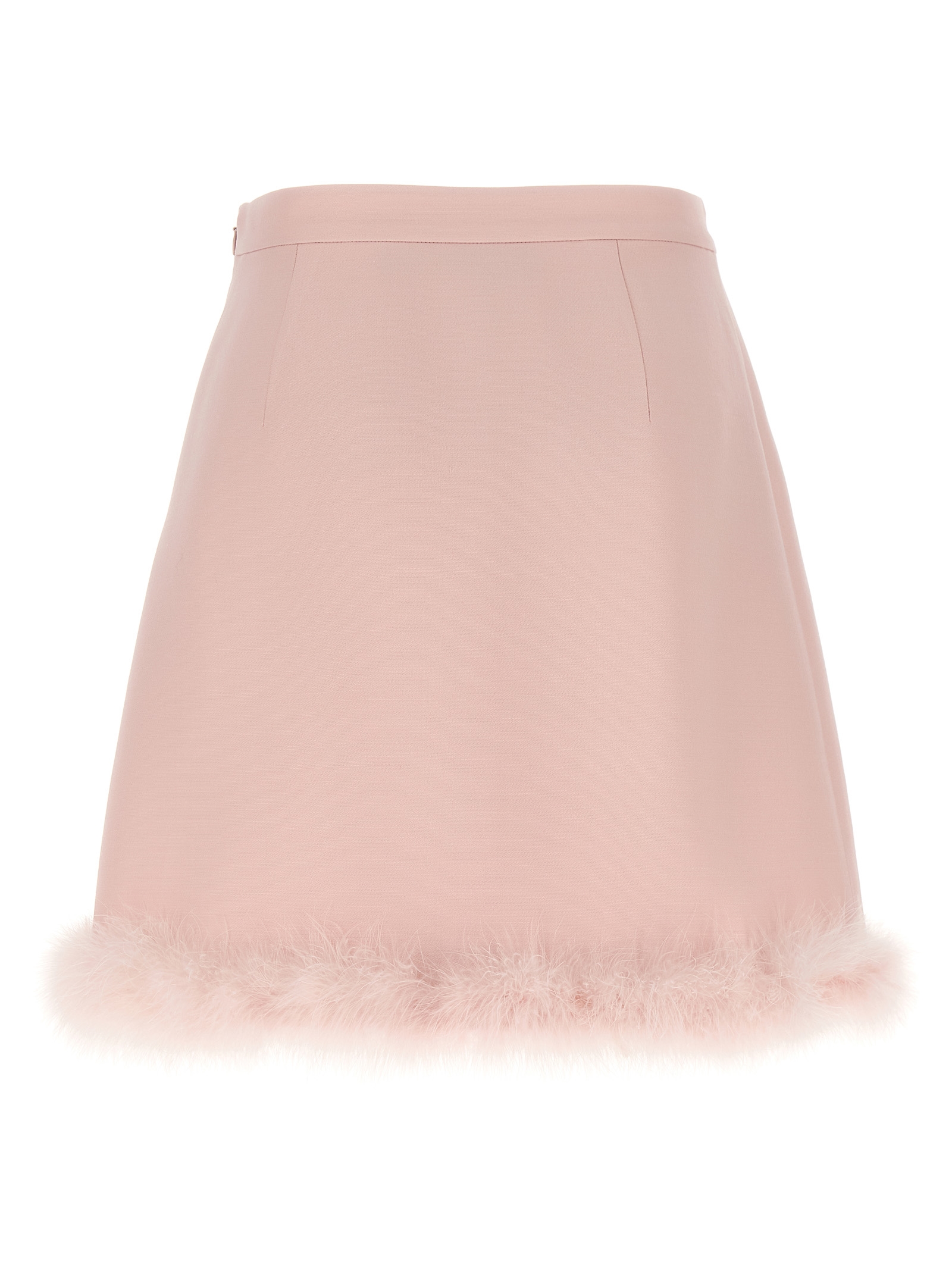 Solid Crepe Couture mini skirt with feather boa on the hem, side zip closure, Fiore, Stripe and VLogo lining in silk blend.