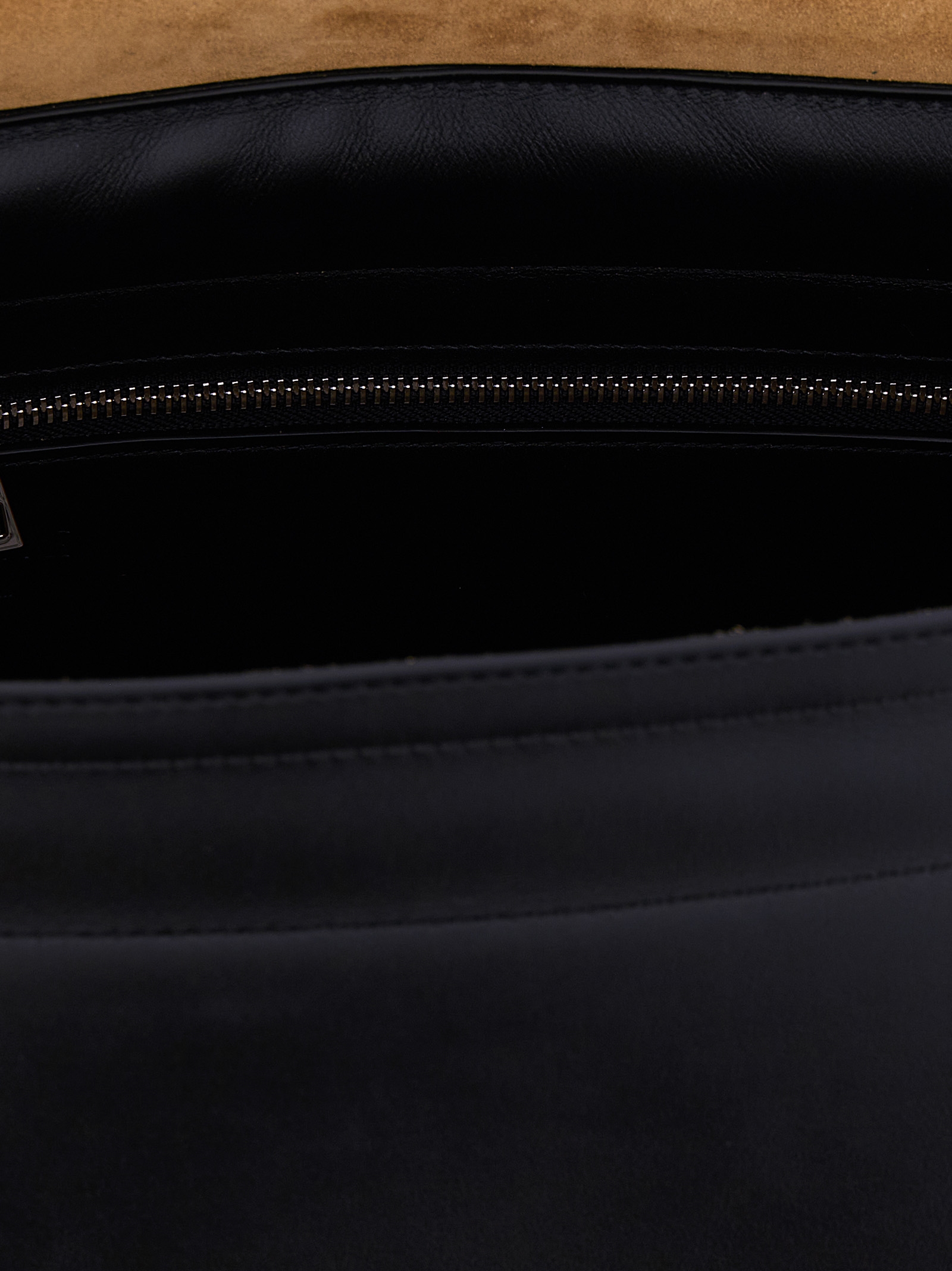 'Flamenco Satchel' crossbody bag in shiny calf leather, inner drawstring with knots, flap closure with front embossed logo, fabric shoulder strap with adjustable and removable jacquard logo.Характеристики товара
