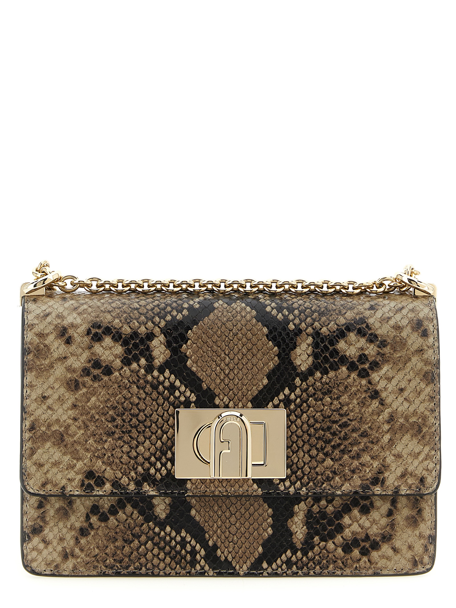 'Furla 1927' mini crossbody bag in python-printed leather with flap closure with metal spin with Arco logo, back pocket, sliding chain shoulder strap with leather shoulder protection.
