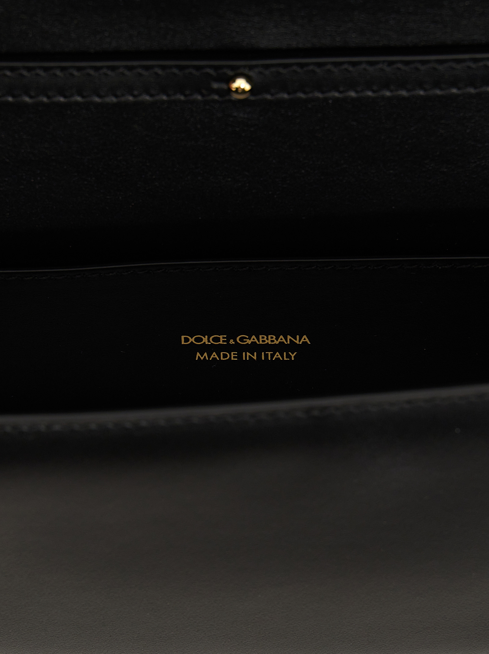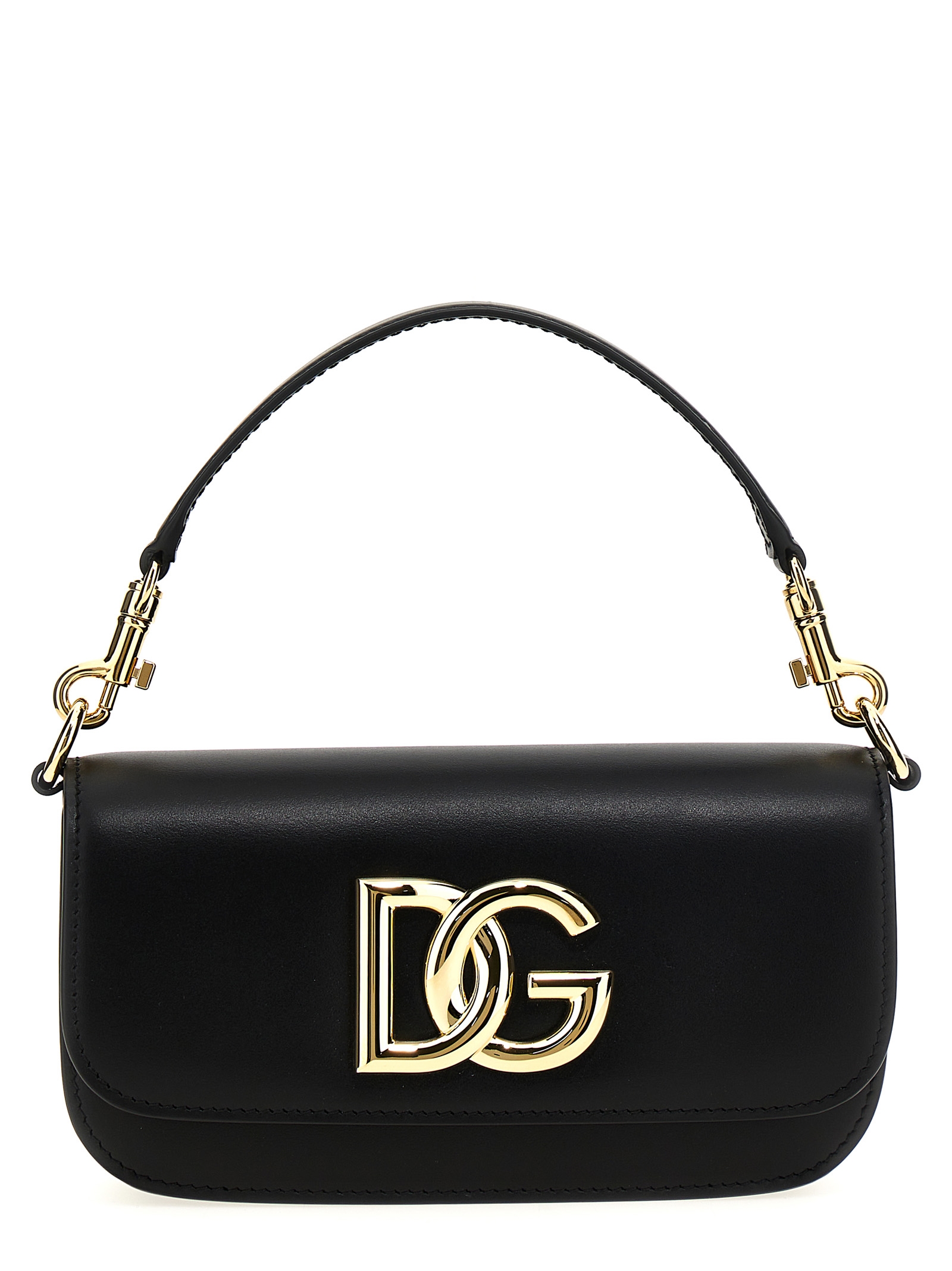 '3.5' leather handbag with double magnet closure, metal DG logo on the front, removable handle and removable chain shoulder strap.