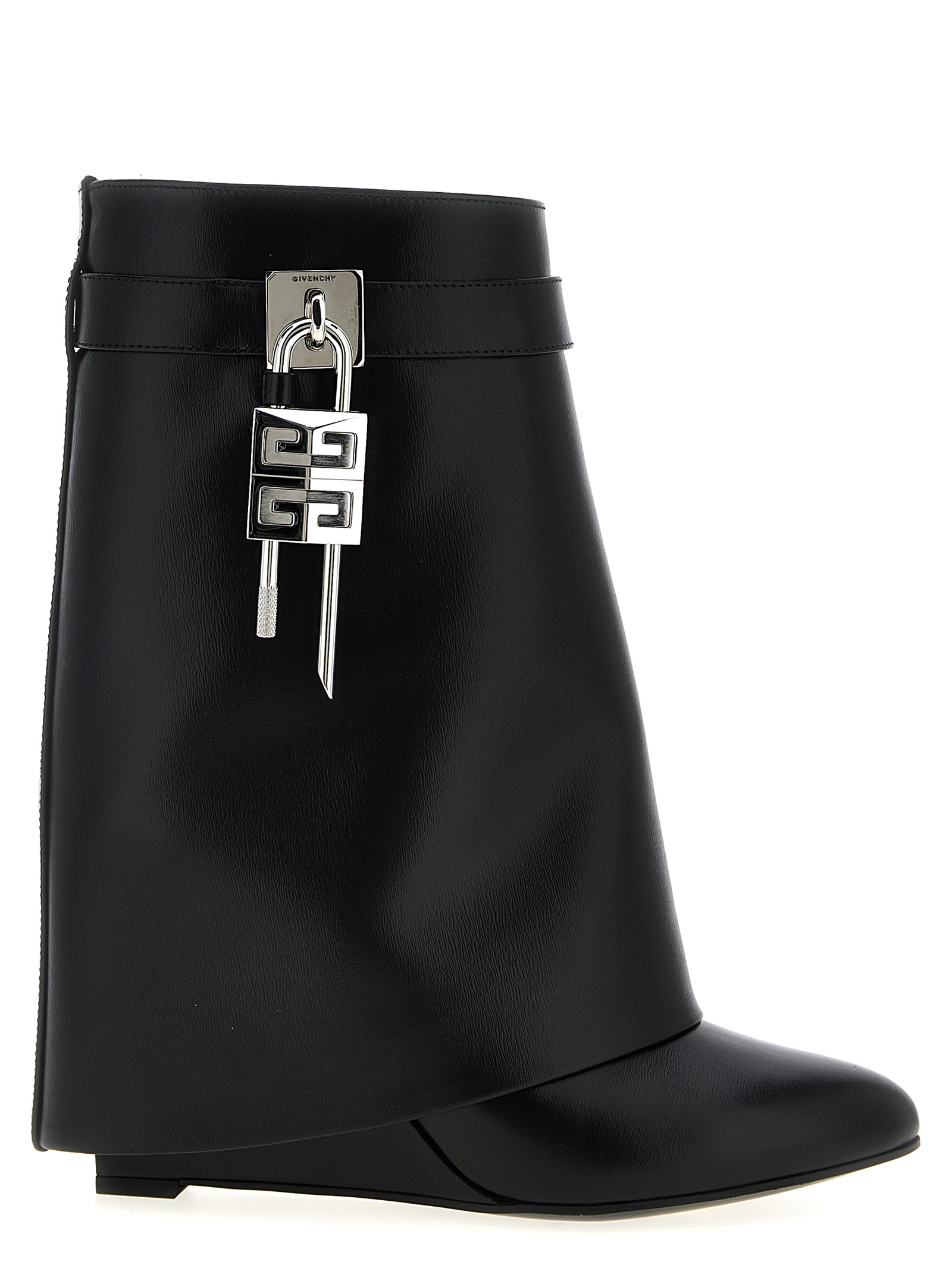 'Shark Lock' leather tube ankle boots with rounded toe, side zip closure, leather band with GIVENCHY metal closure, silver finish 4G Lock on the right side and GIVENCHY gold and silver lock on the left side, covered wedge heel, leather sole.Характеристики товара