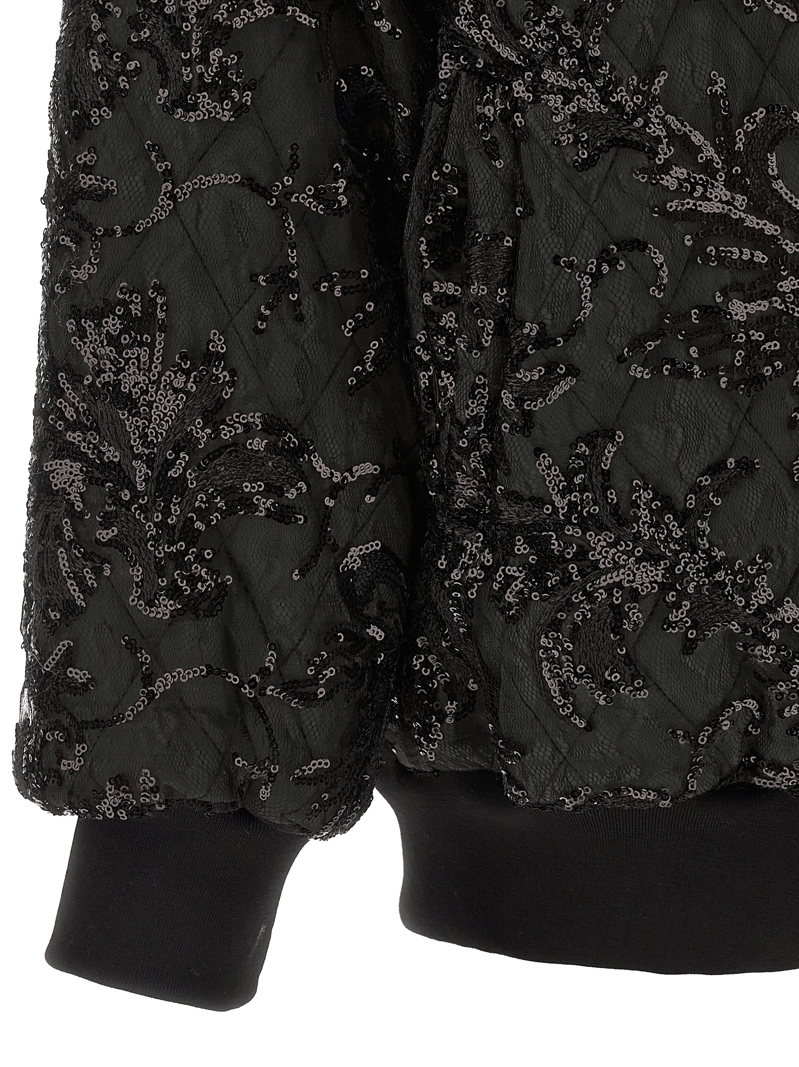 Belluno' bomber jacket in quilted fabric covered in lace with all-over sequin appliqué, front zip closure, pockets, long cuffed sleeves.