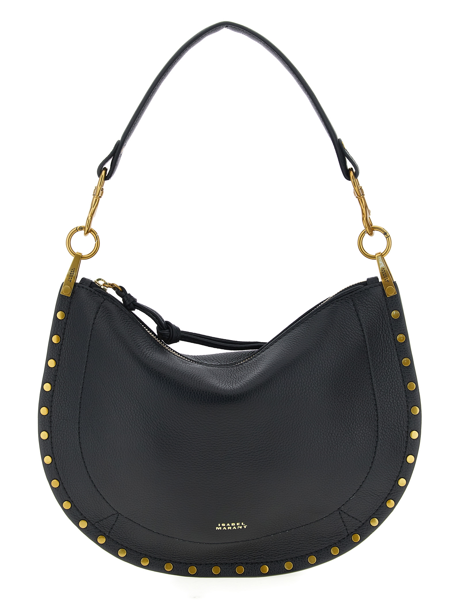 'Oskan Soft Zip' handbag in grenade calf leather with stud appliqué, front embossed logo, top zip closure, removable handle, adjustable and removable shoulder strap.
