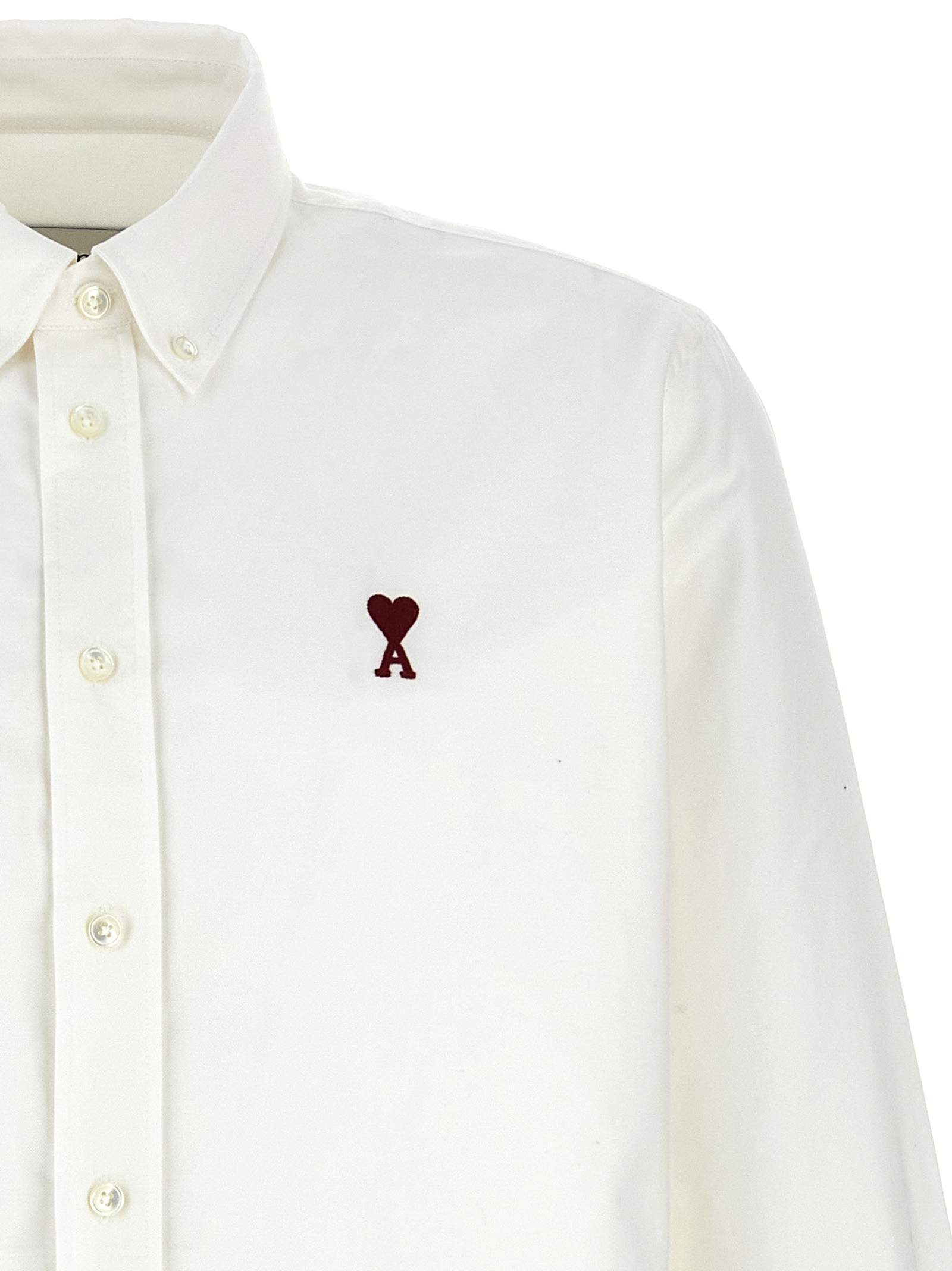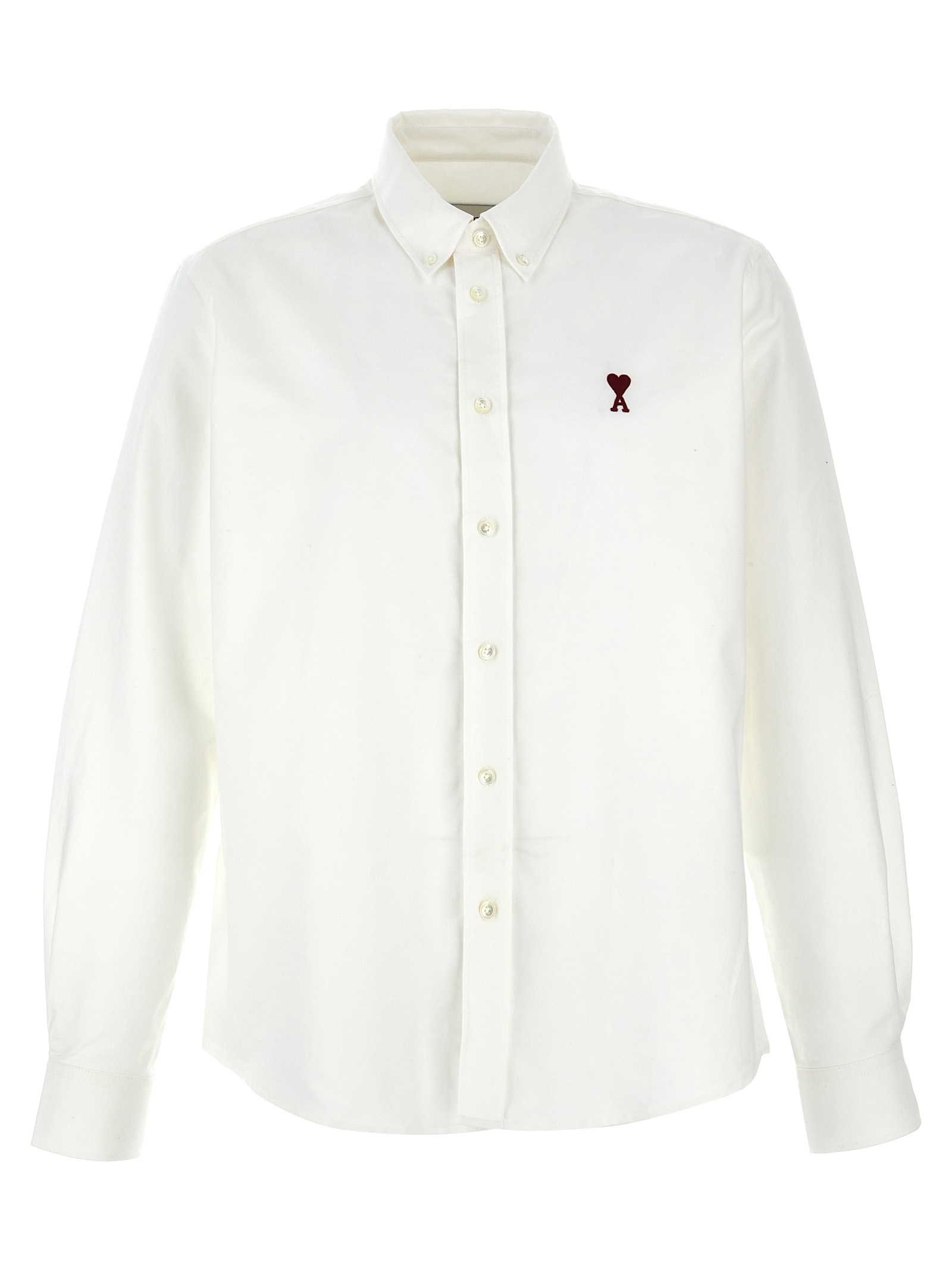 Рубашка из оксфордского хлопка, на пуговицах, с вышитым логотипом «Ami de Coeur» и застежкой на пуговицы спереди, длинные рукава с манжетами и приспущенными плечами, закругленный и асимметричный низ.