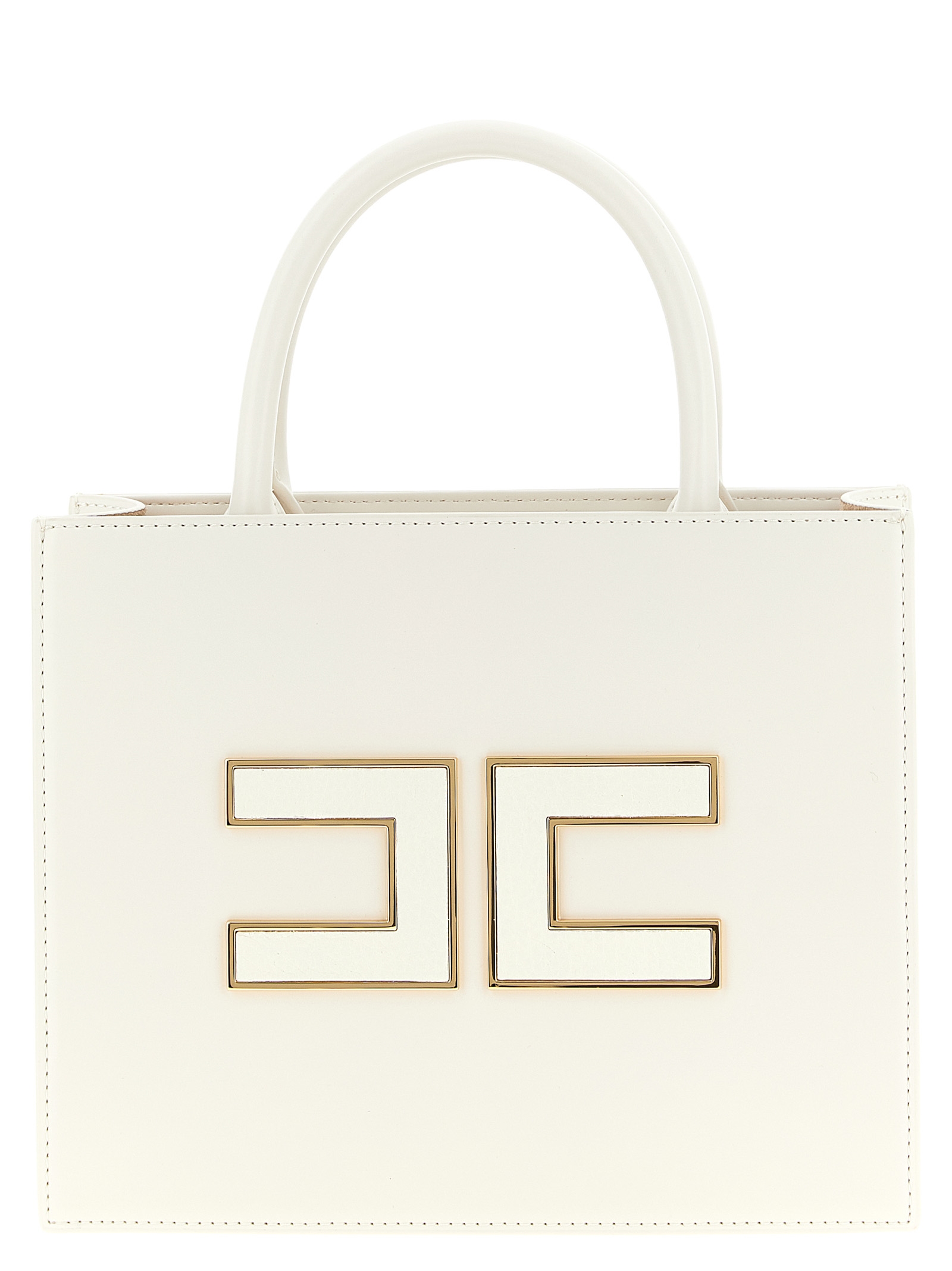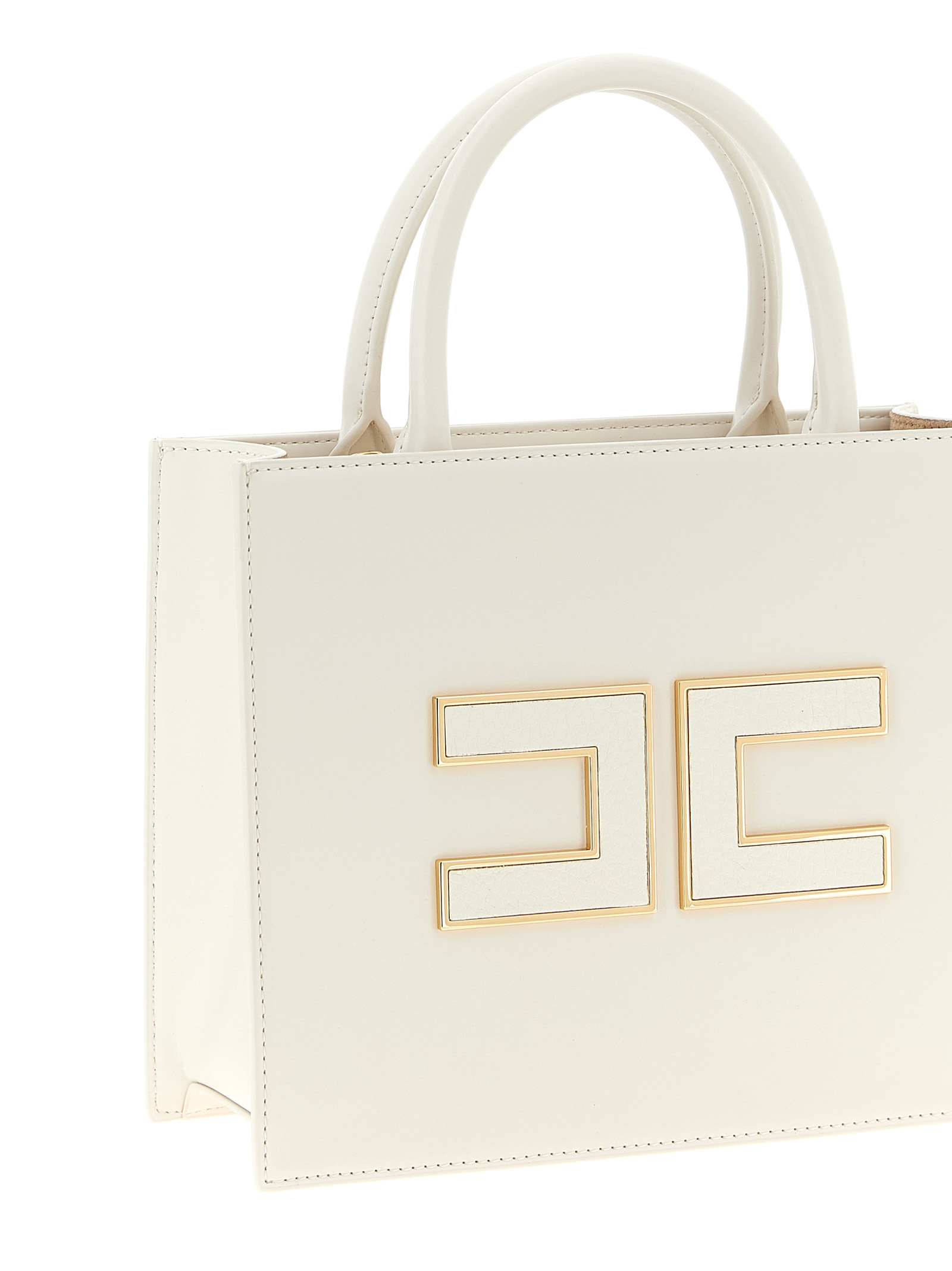 Small 'Tote' handbag in leather-effect fabric, maxi front metal logo with hammered leather-effect fabric lining, double fixed handle, top zip closure, adjustable and removable shoulder strap.