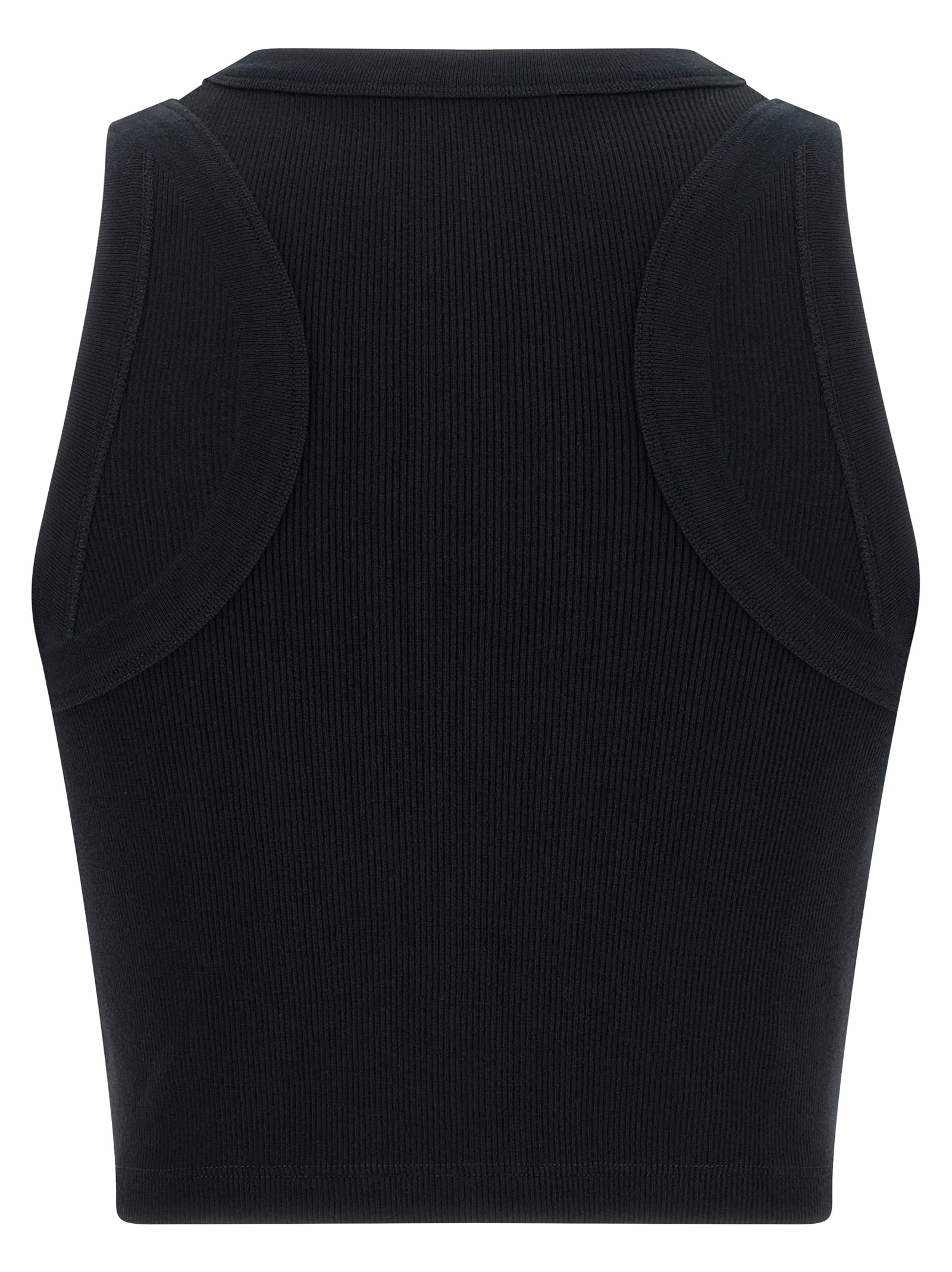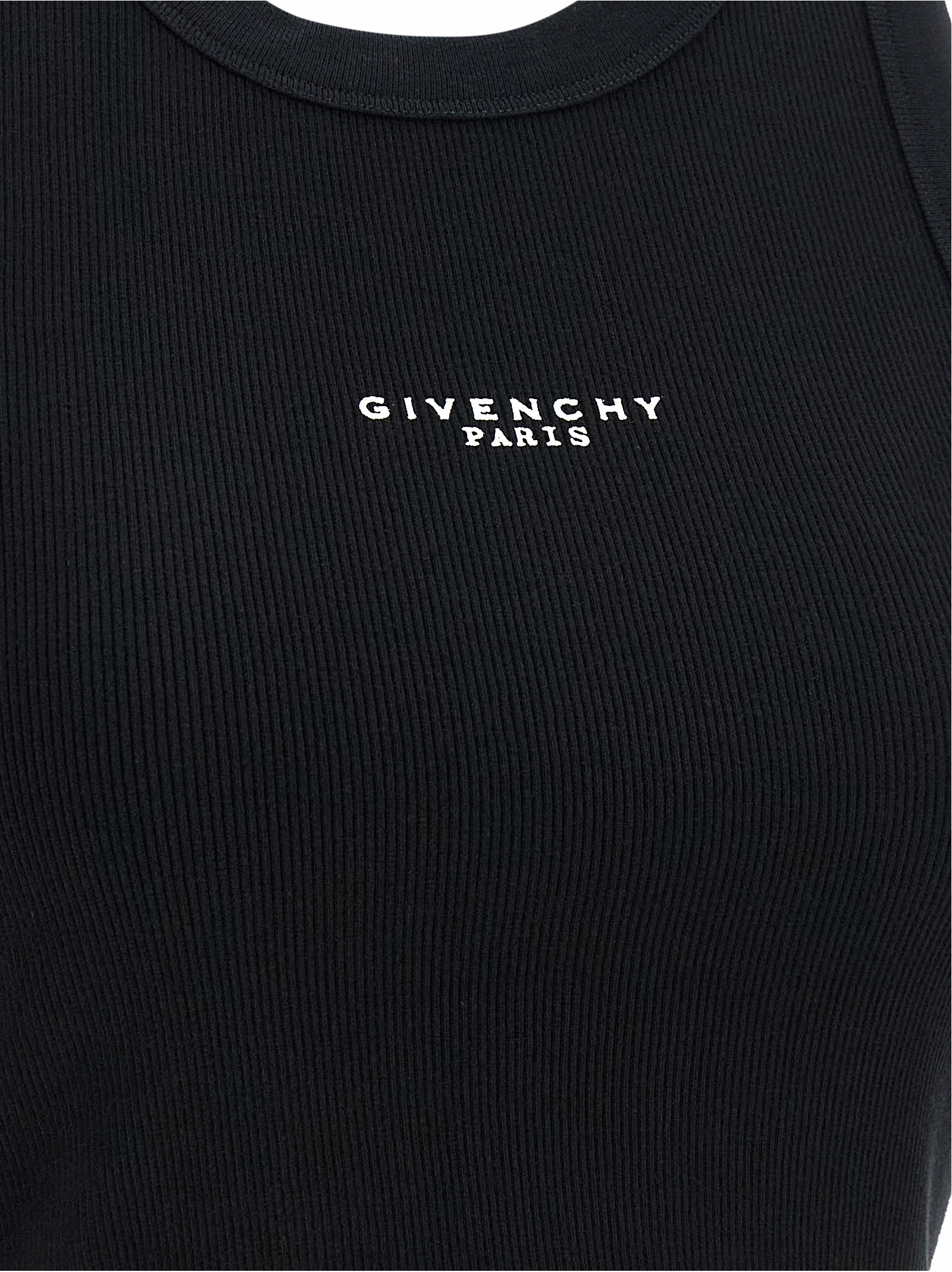 Ribbed stretch cotton top with front 'Givenchy Paris' print, cropped fit, crew neck, sleeveless.