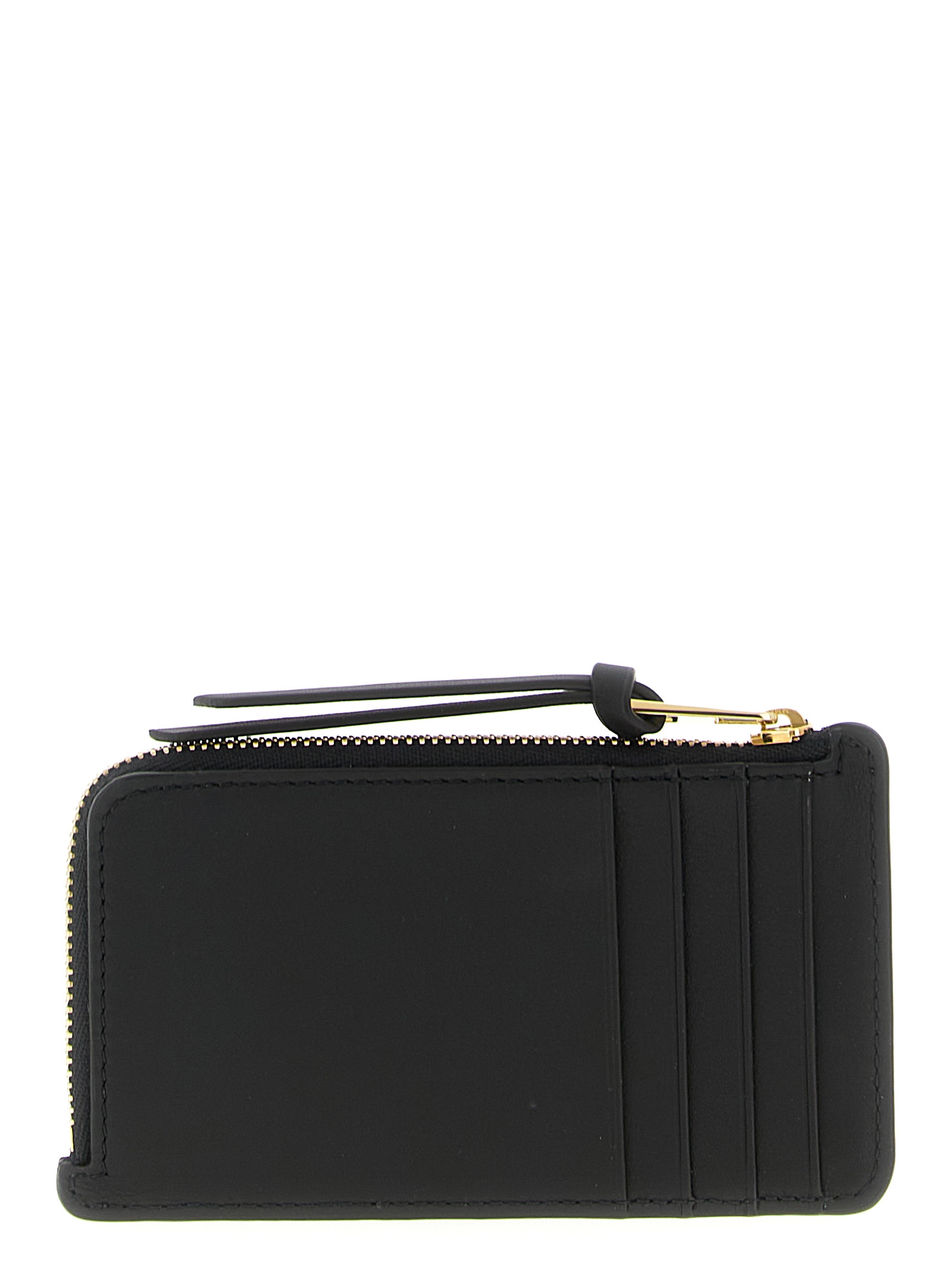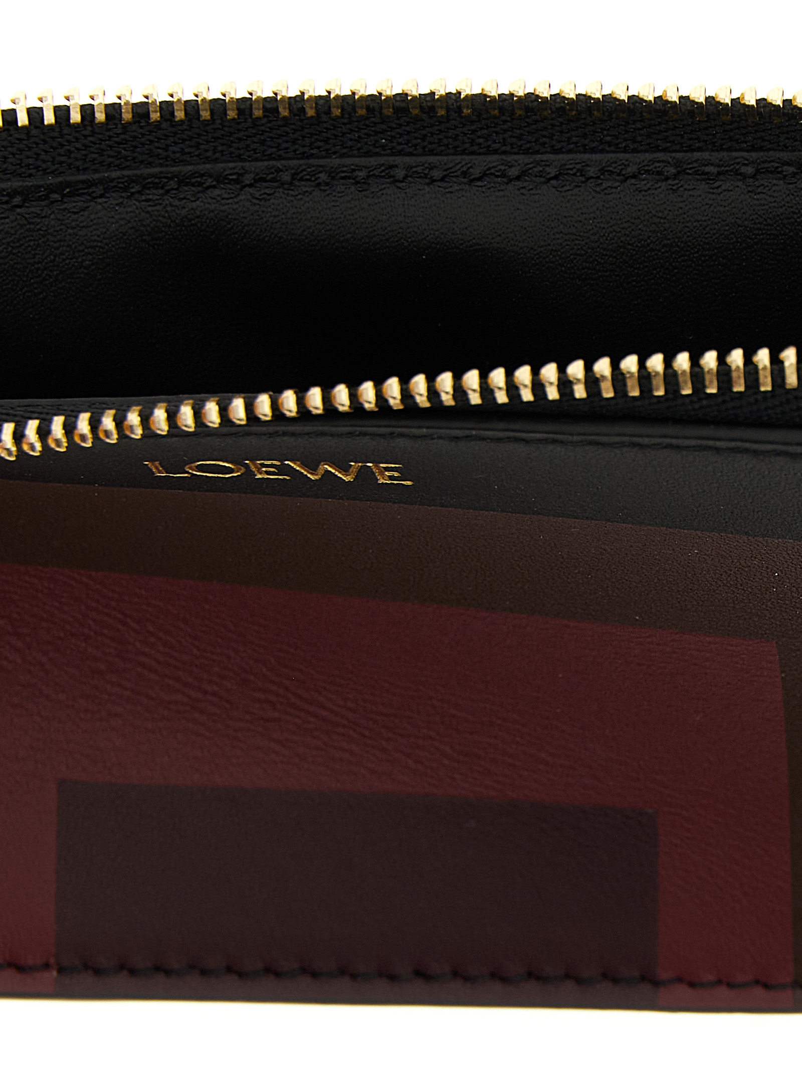 Calf nappa card holder with inlaid squares inspired by Josef Albers' "Homage to the Square" series, front embossed logo, and top zip closure. This bag is part of LOEWE x Josef and Anni Albers collection.