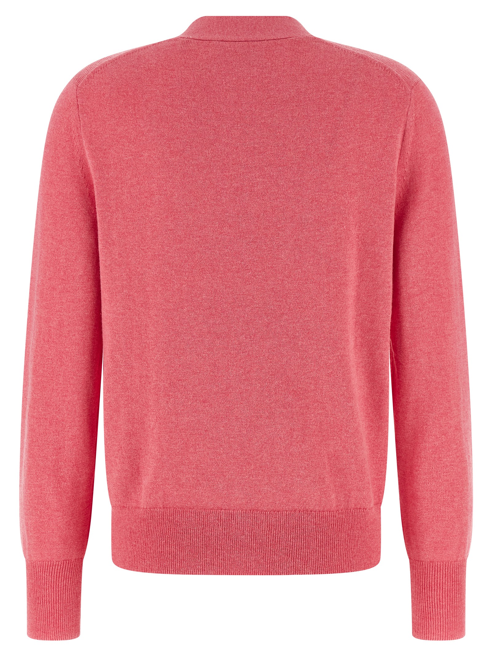 'Karina' mélange cotton and wool blend cardigan, contrast logo embroidery and front horn button closure, V-neck, long cuffed sleeves, and band on the hem.