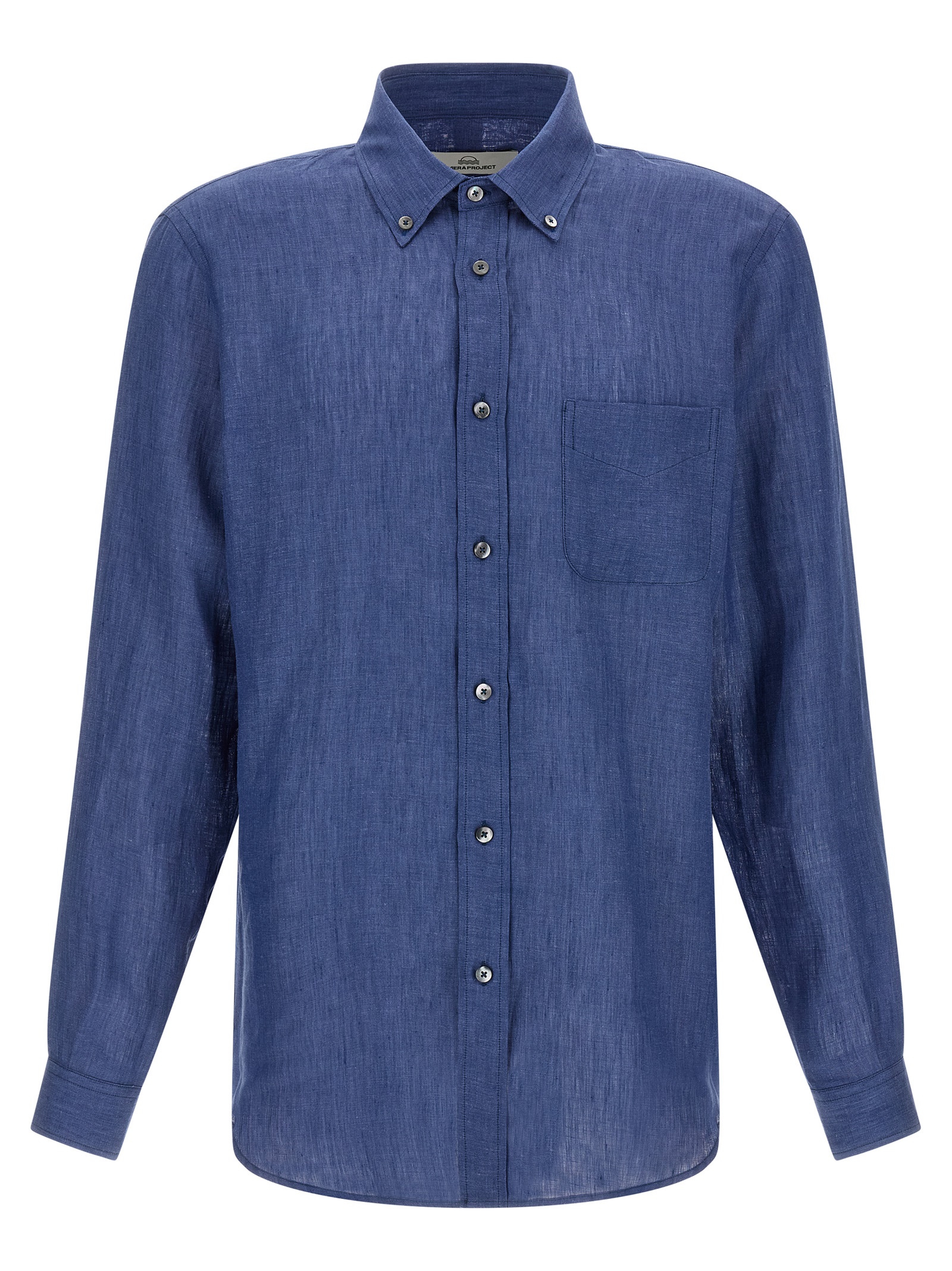Linen shirt, button-down model, front mother-of-pearl button closure, breast pocket, long sleeves with rounded cuffs, rounded hem.Характеристики товара