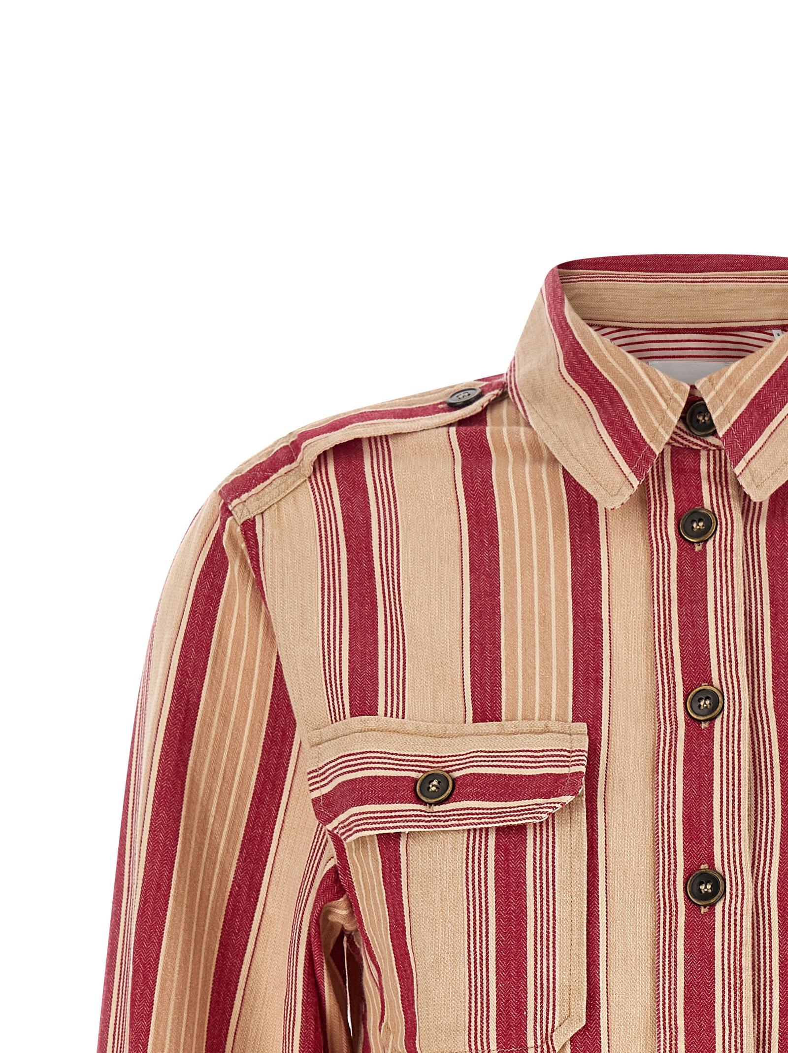 'Gelva' striped cotton canvas shirt with classic collar, front button closure, front pockets with flap and button, button on the skins, long sleeves with buttoned cuffs.