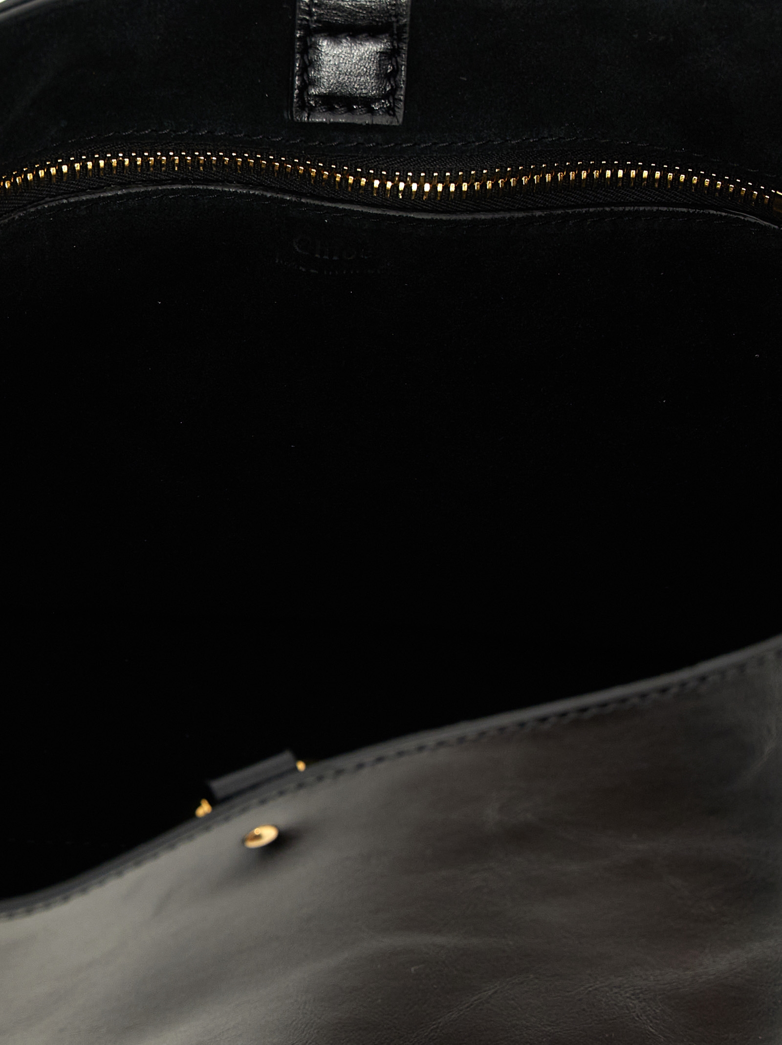 Small 'Marcie' shoulder bag in shiny calf leather, fixed handle with metal logo, tassel closure