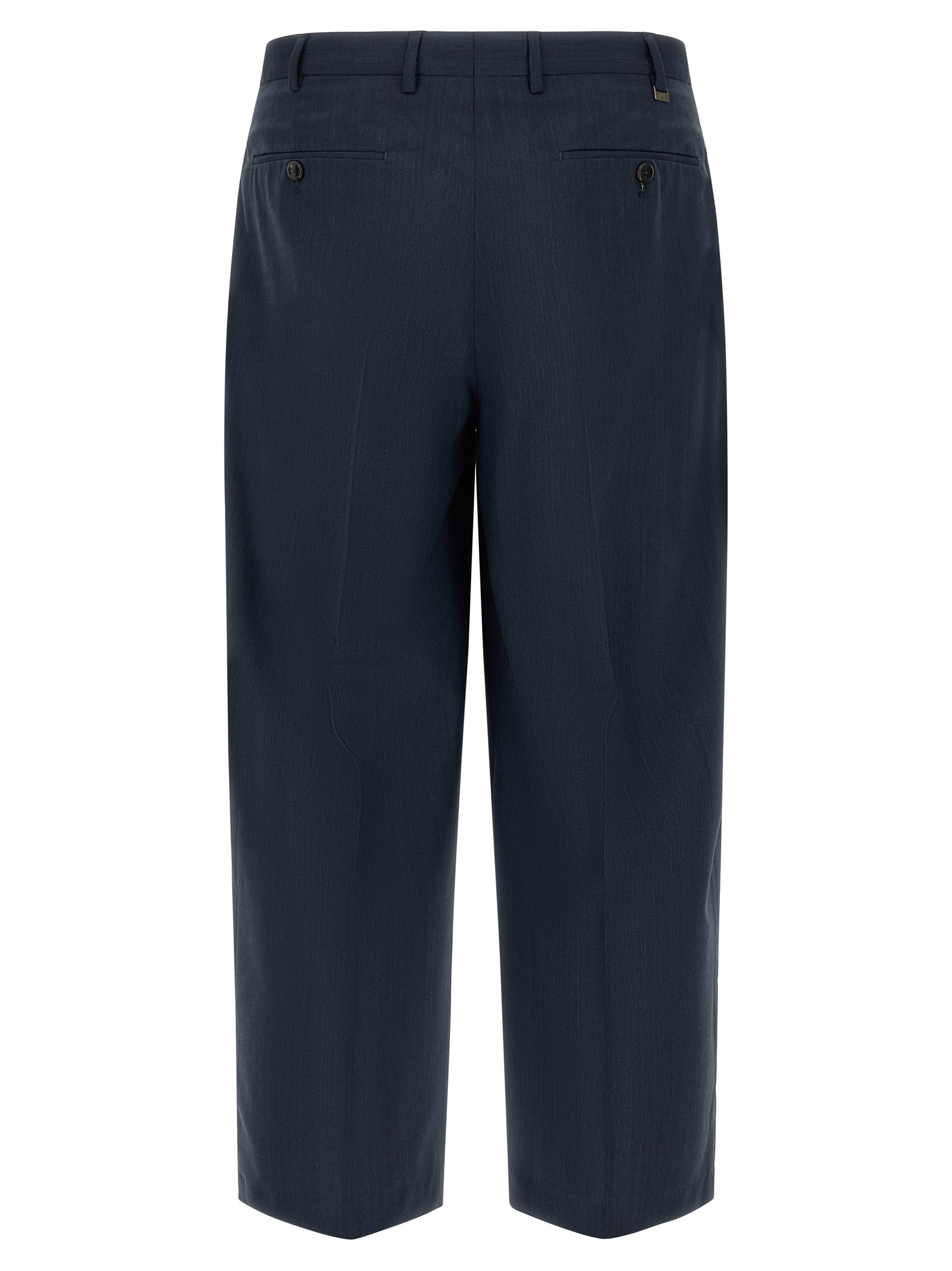 Deluxe virgin wool 'Dandy' trousers, straight leg, stretched pleat, hook and front zip closure, front French pockets, back welt pockets.