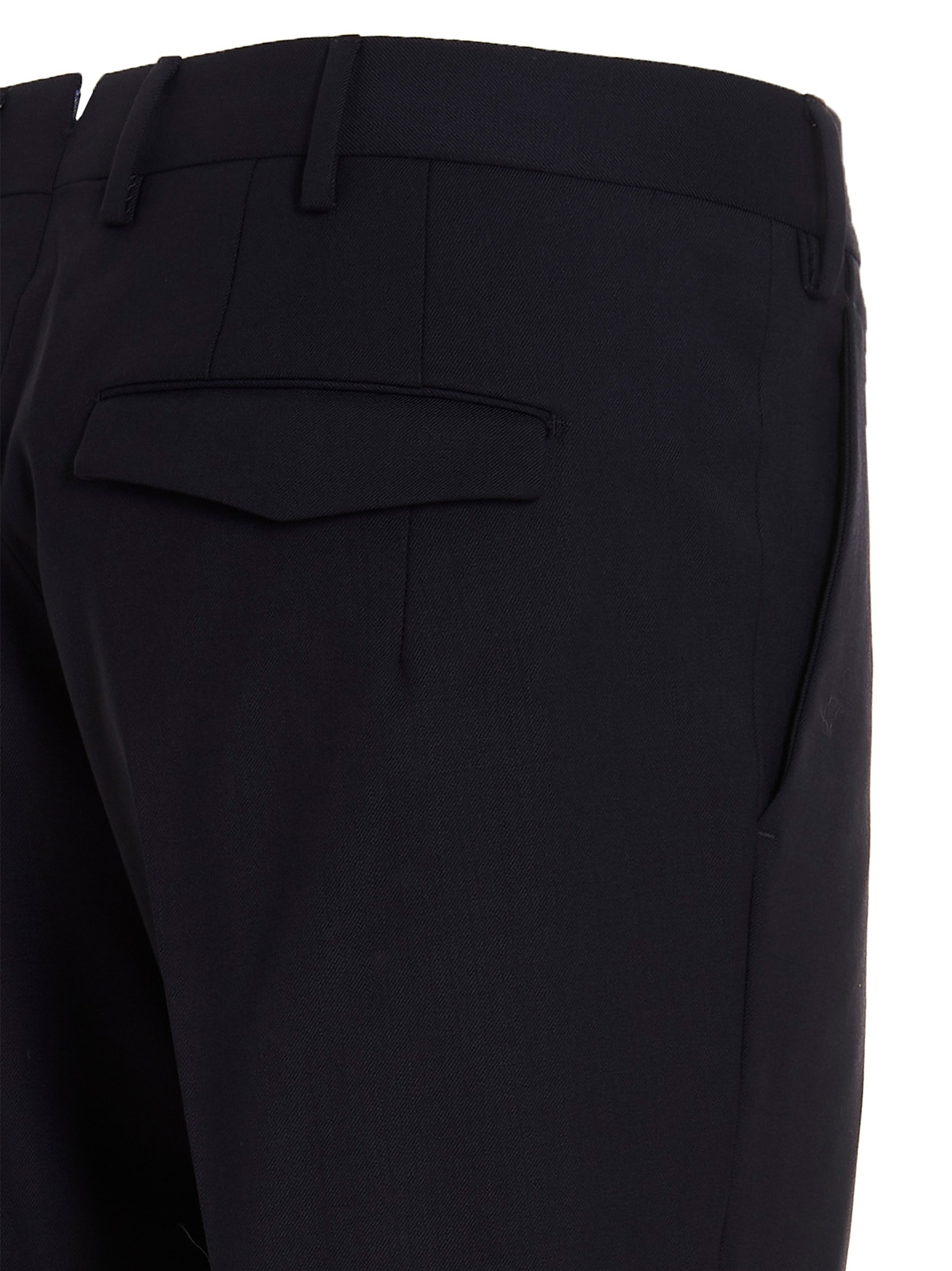 'Master' pants in stretch 350gr batavia wool, hook and button zip closure, pockets, leg with central crease.