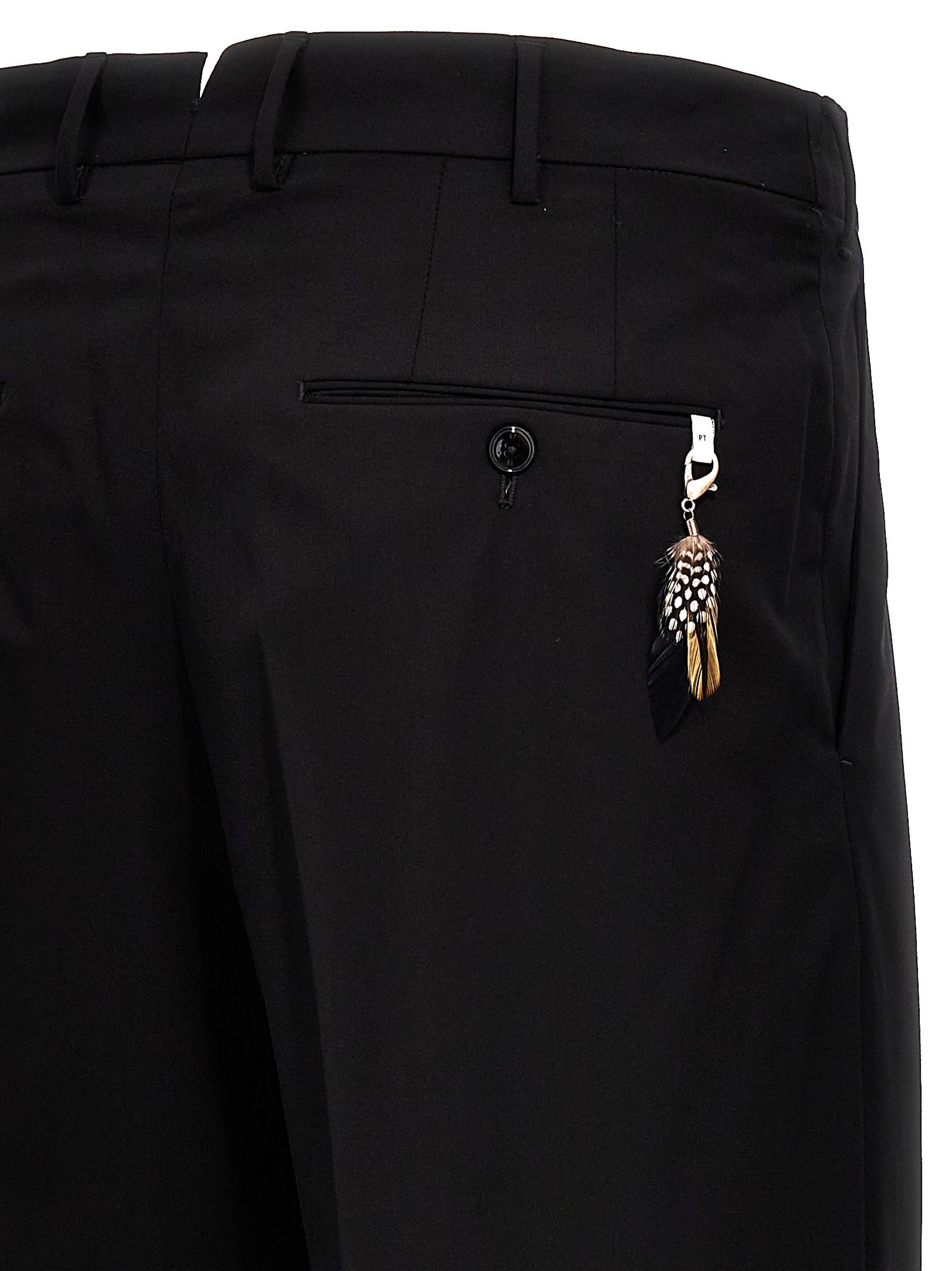 'Dodici' wool blend trousers with zip and hook closure, pockets, leg with pin tucks and crease.