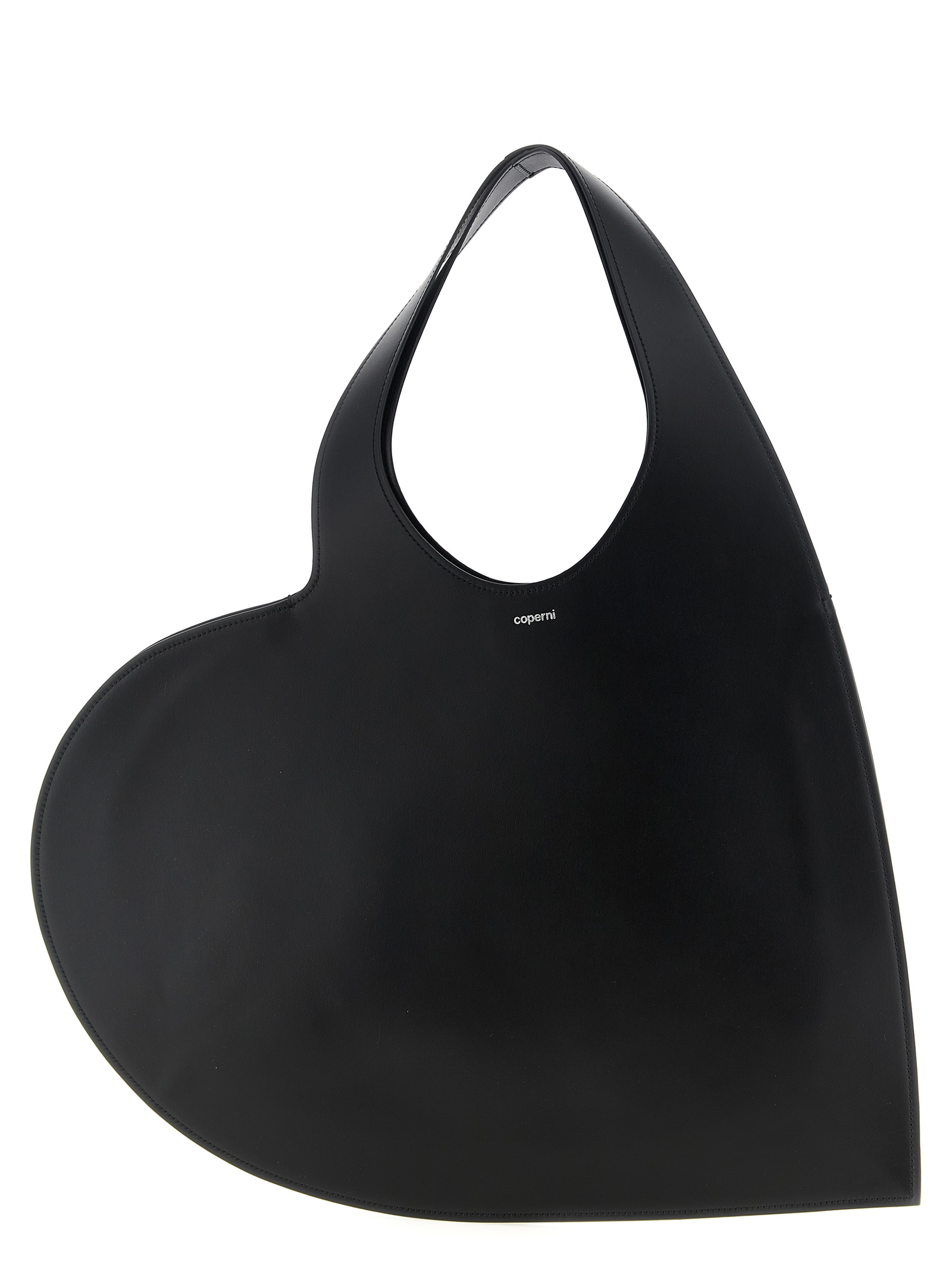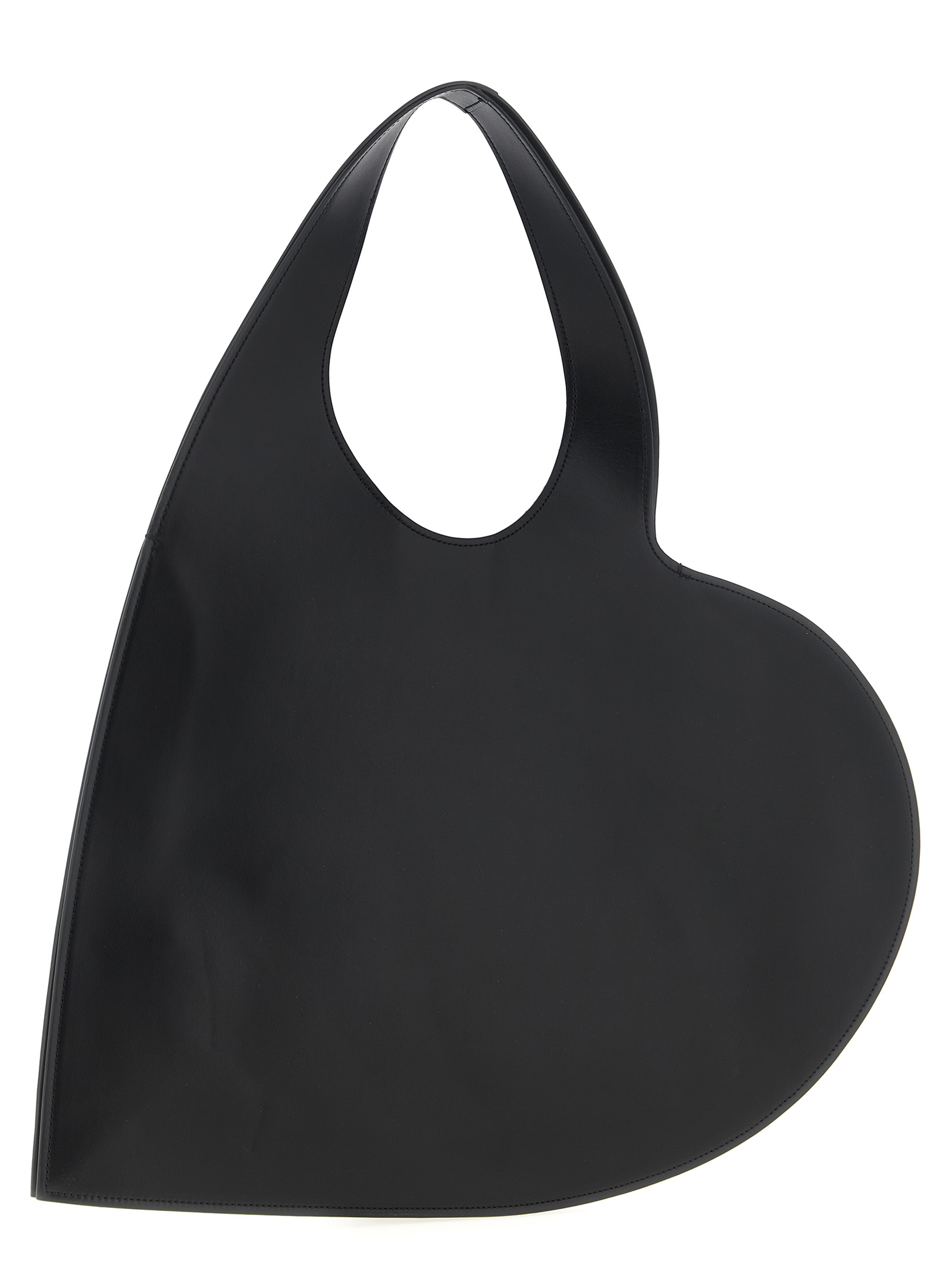 'Double Heart' shoulder bag in smooth leather, heart-shaped model, front embossed logo, gusset, double fixed handle.
