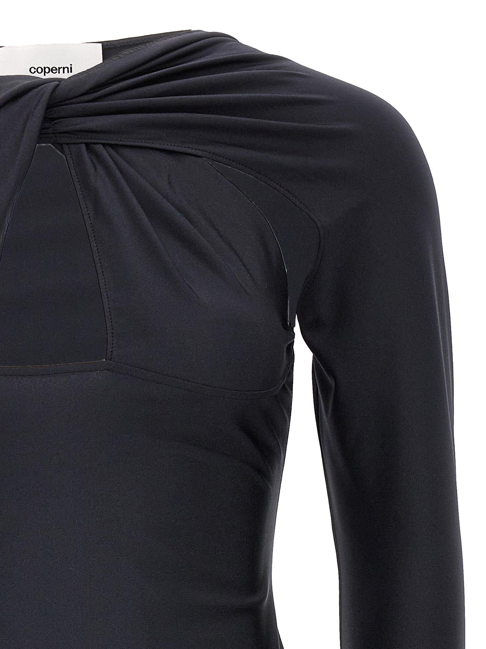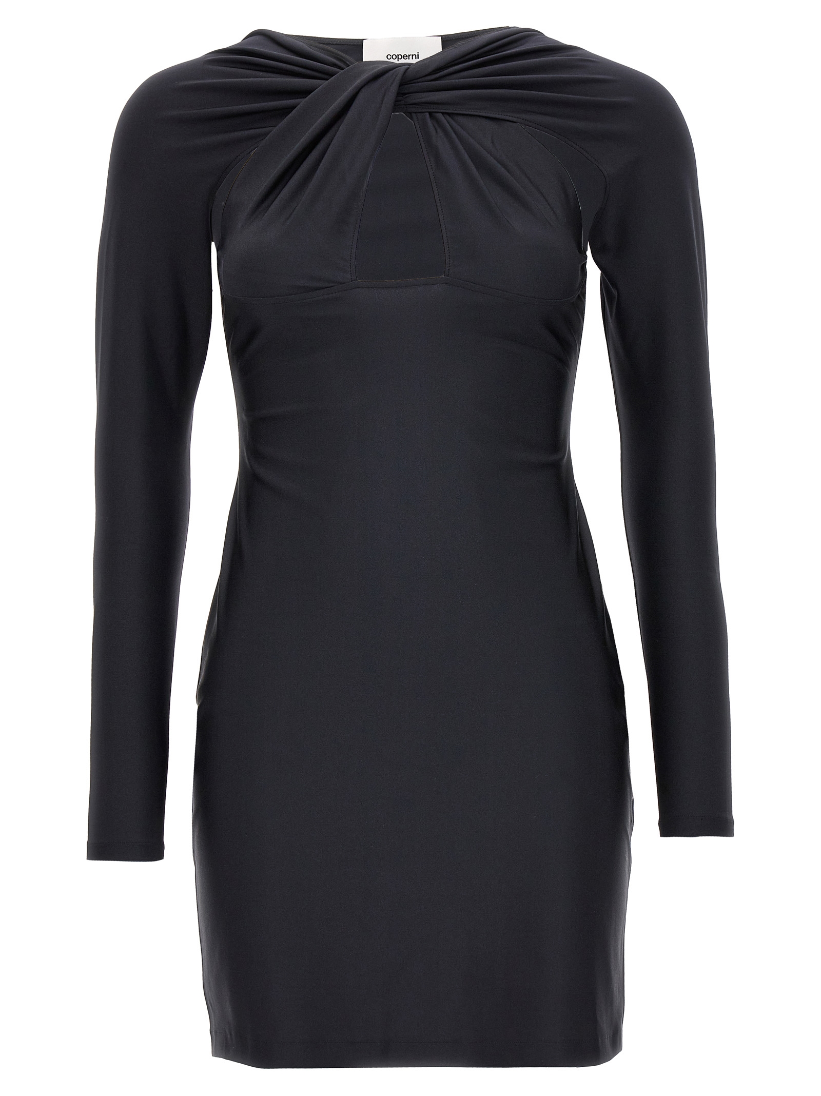 Twisted Cut-Out' stretch fabric dress with cut-out details, front crossover, long sleeves.