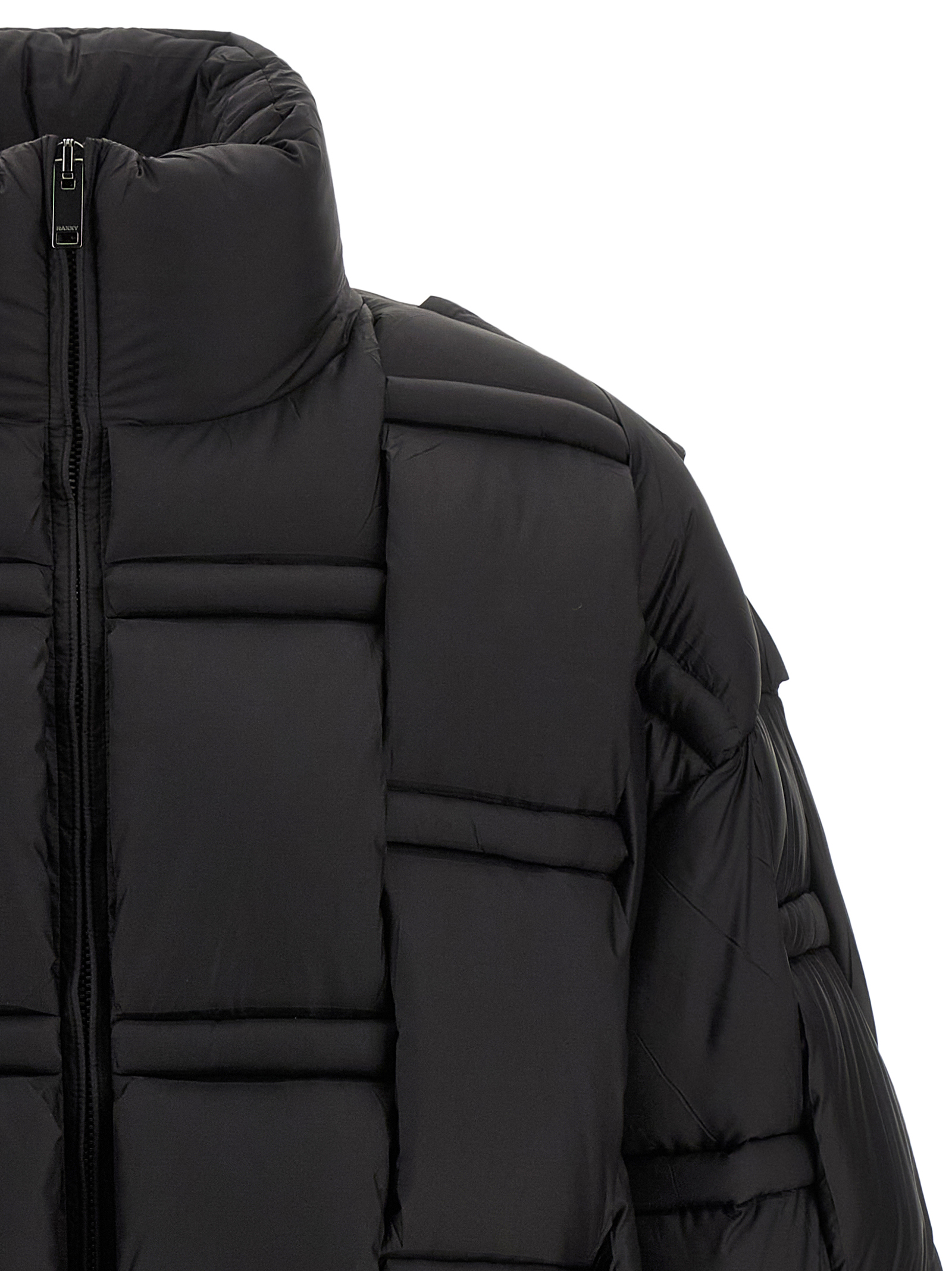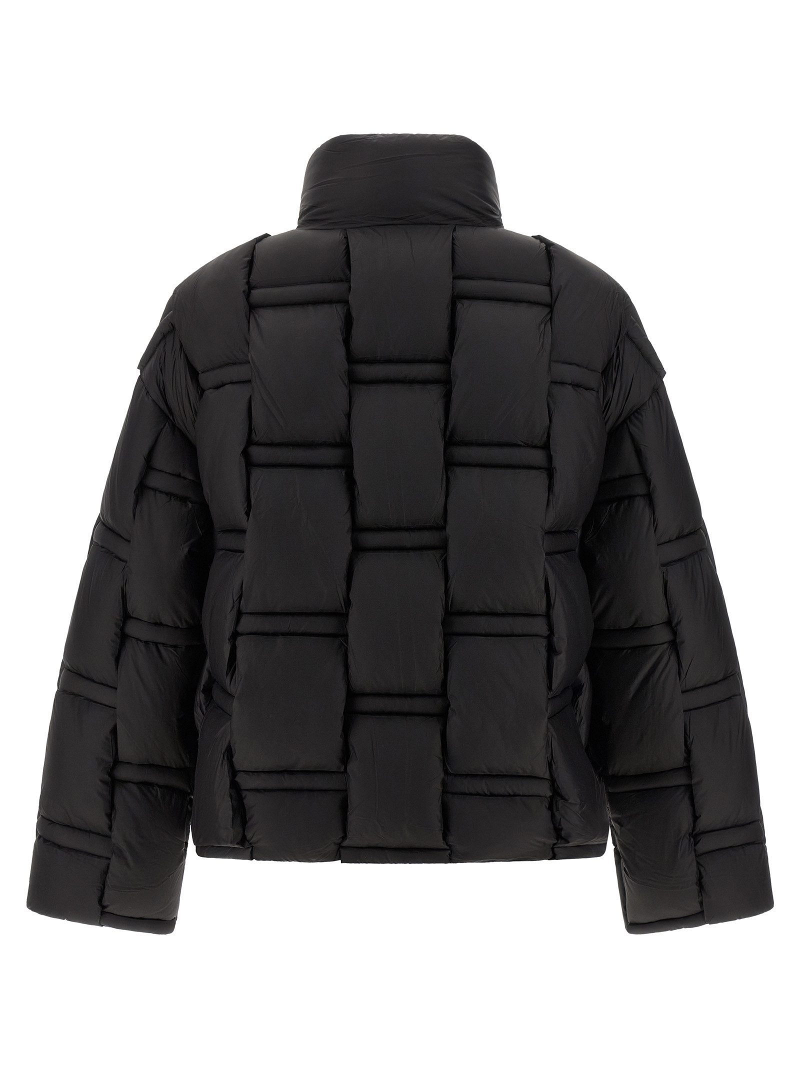 Nylon down jacket with braided 3D structure and goose feather padding, high neck, front zip closure, pockets, long sleeves.Характеристики товара