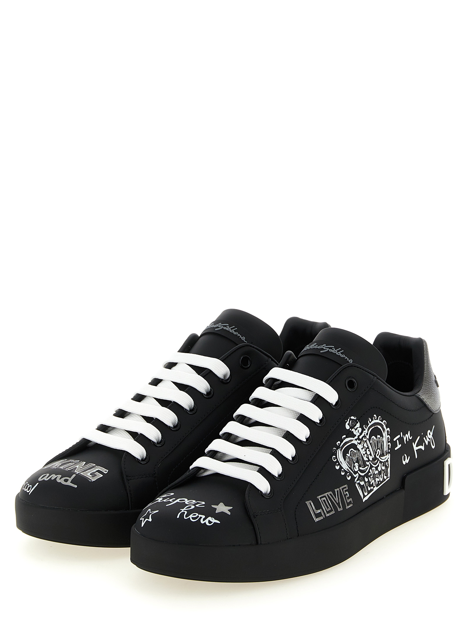 'Portofino' leather sneakers with hand-painted lettering and side jewel detail, lace-up closure, logo rubber sole.