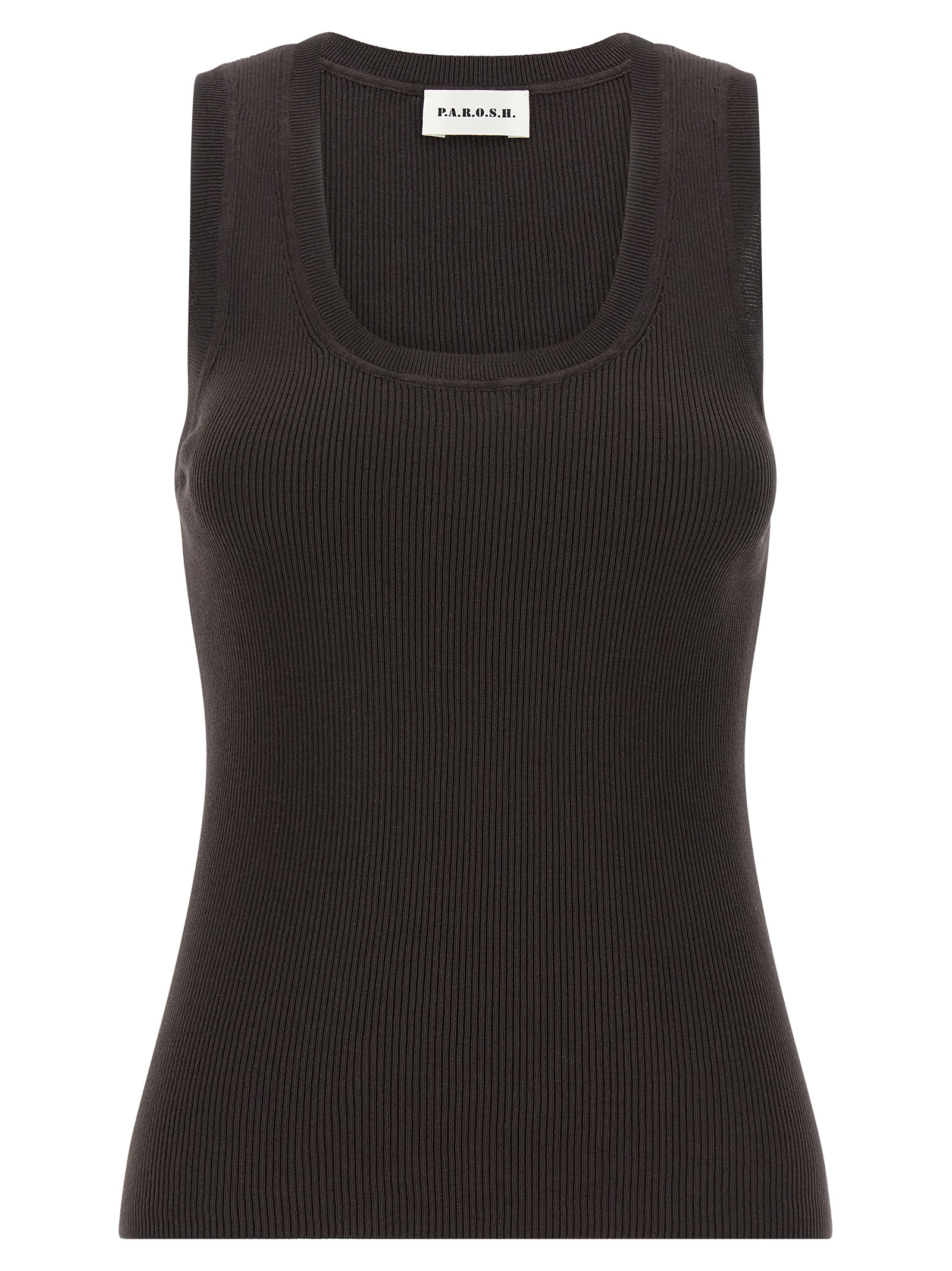 'Cipria26' ribbed stretch cotton top with wide front neckline.