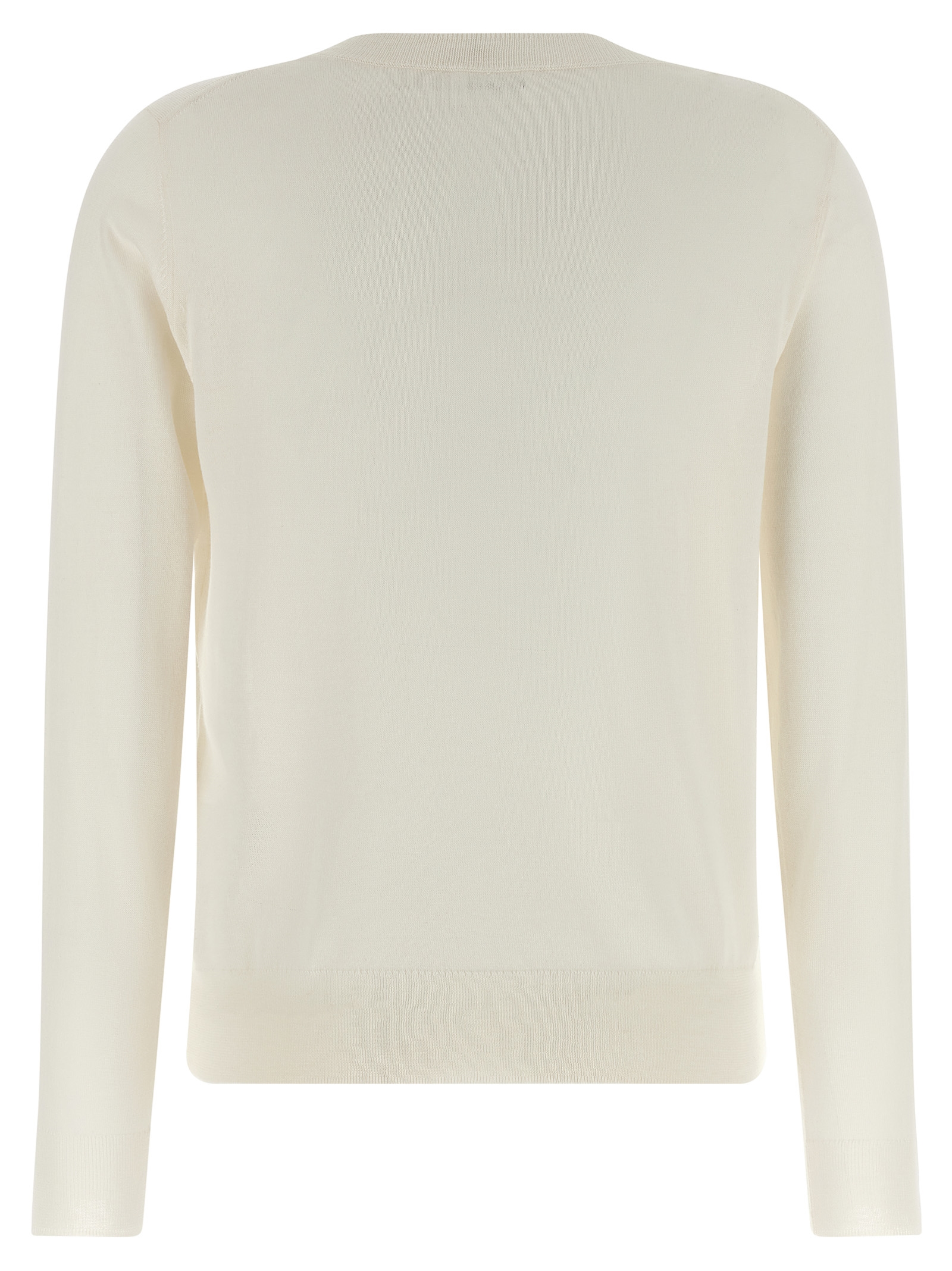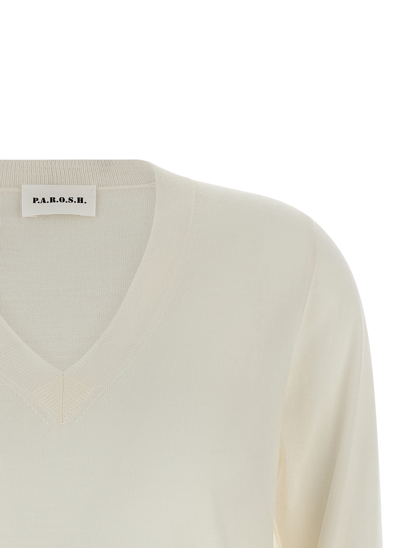 'Linfa26' sweater in wool, silk and light cashmere blend, V-neck, long cuffed sleeves, and band on the hem.