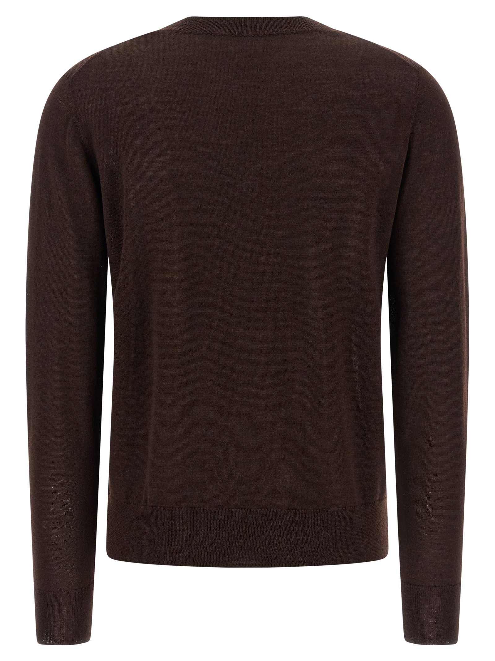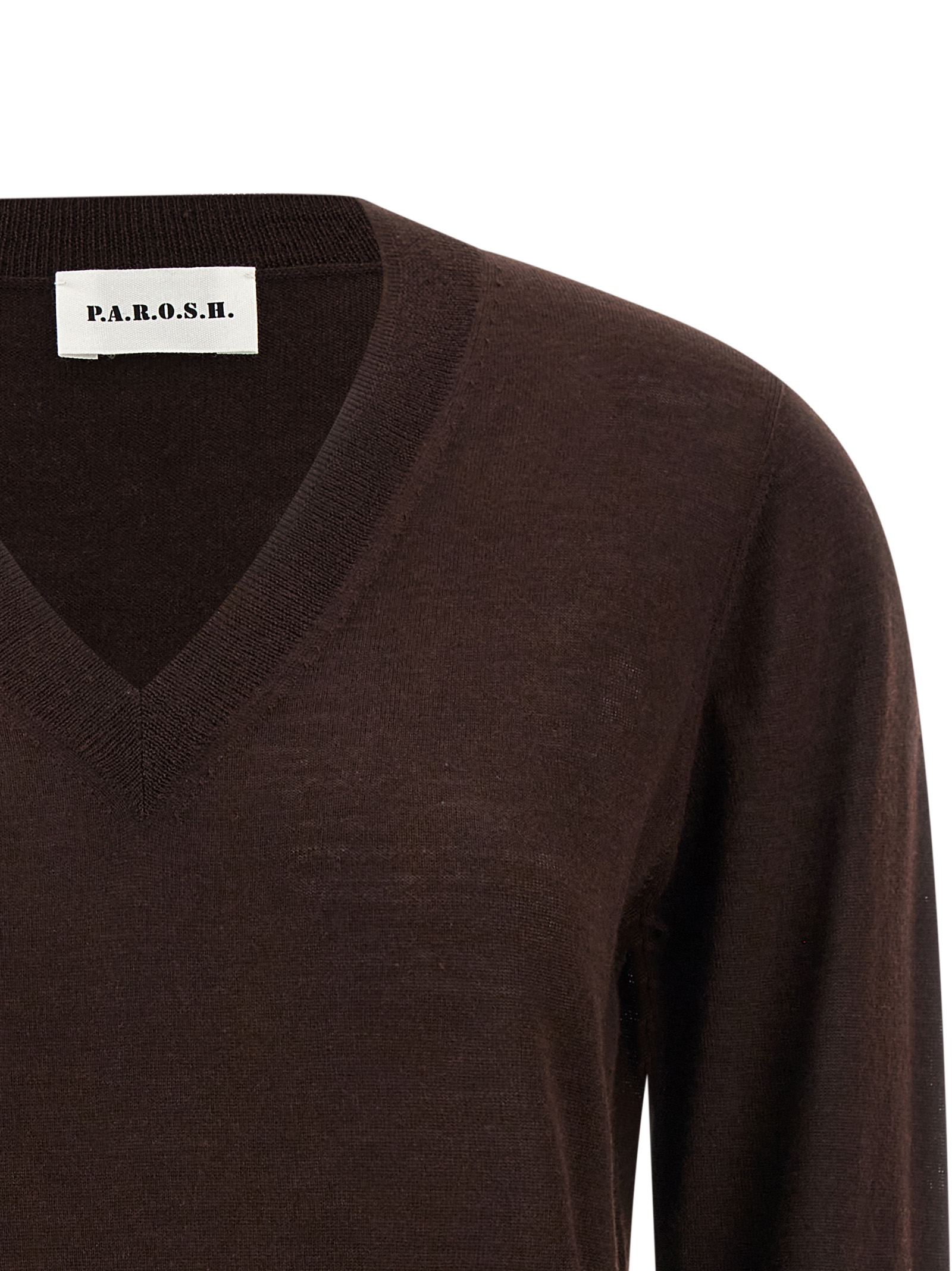 'Linfa26' sweater in wool, silk and light cashmere blend, V-neck, long cuffed sleeves, and band on the hem.