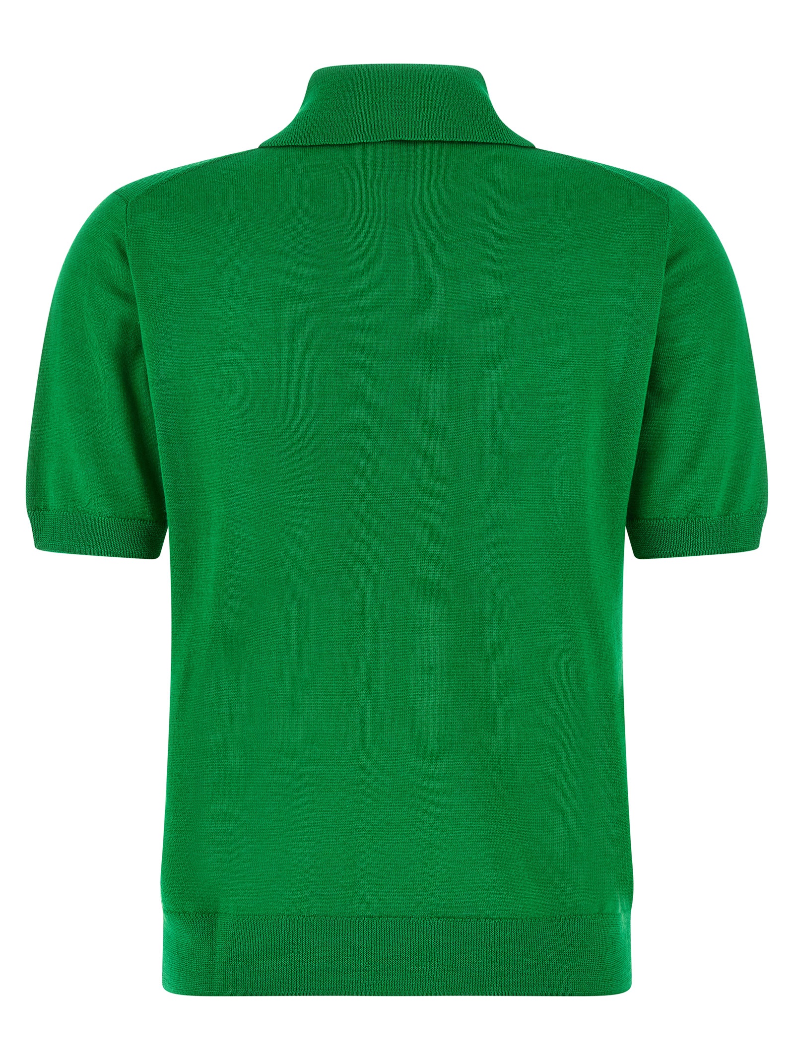 'Linfa26' polo shirt in wool, silk and light cashmere blend, collar and buttons, pockets, short sleeves with cuffs, and band on the hem.