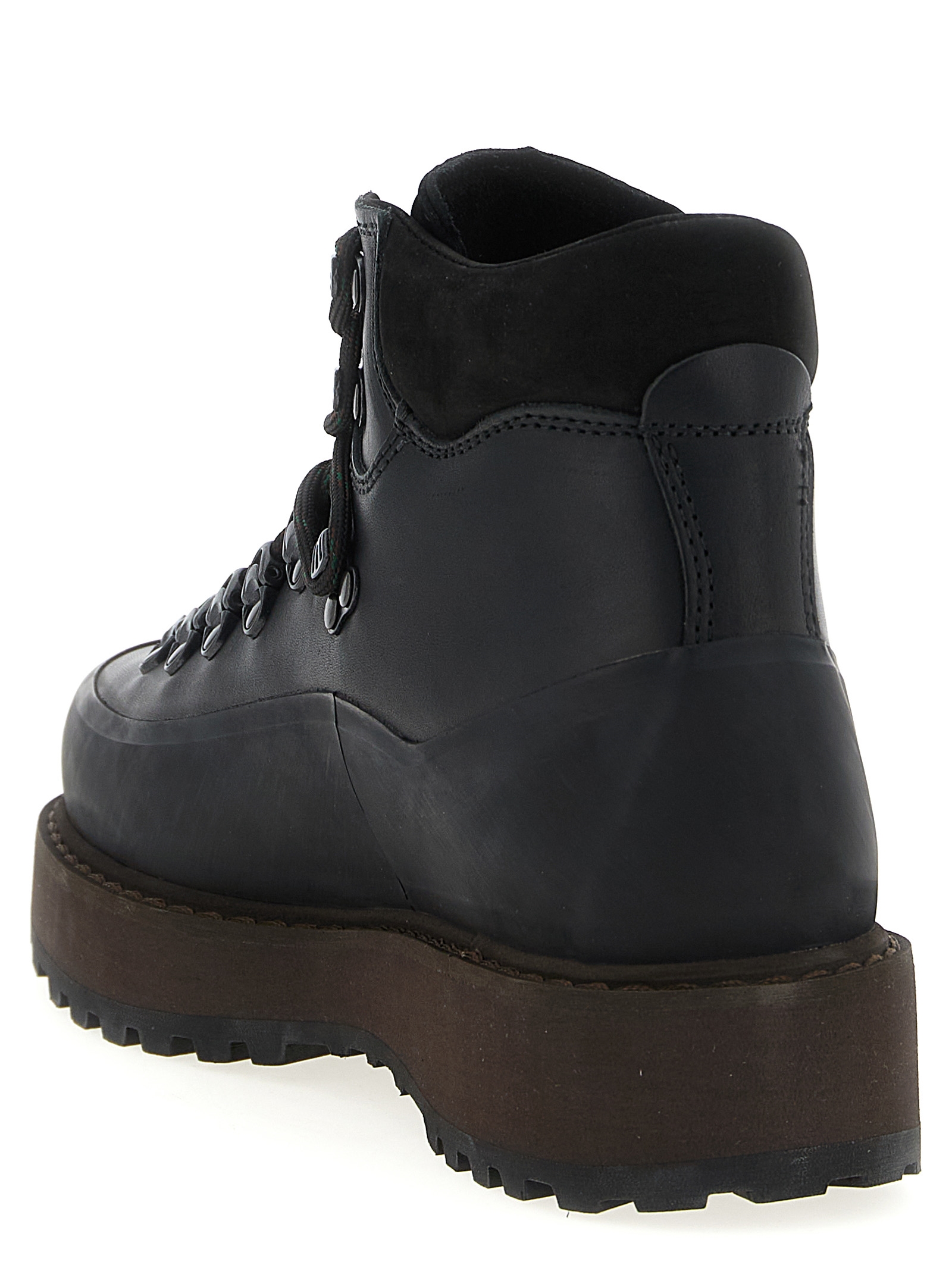 'Roccia Vet Due Gomma' leather ankle boots treated with wax and finished with wide rubber band, lace-up closure, tonal hardware, padded lining, rubber sole.