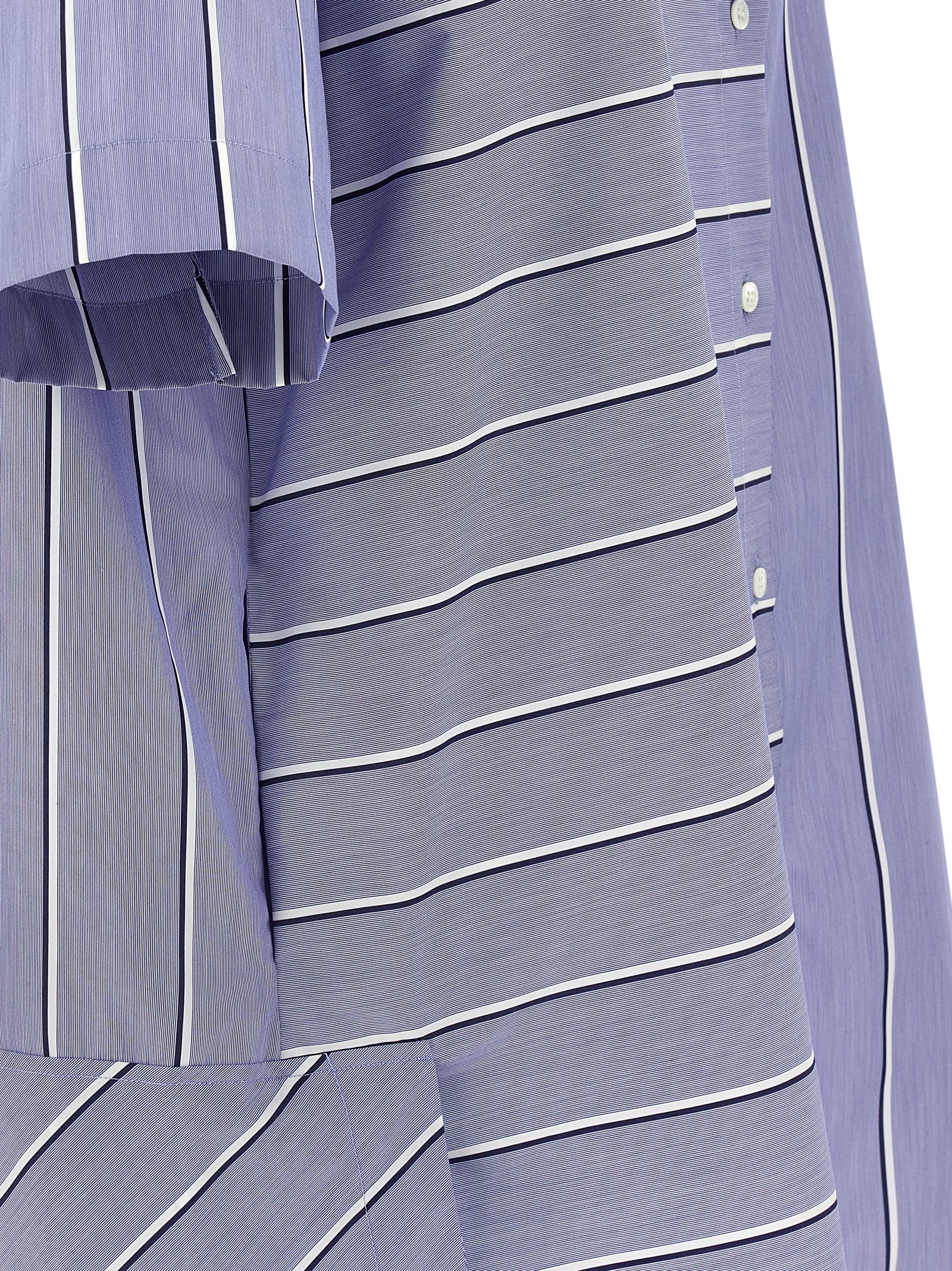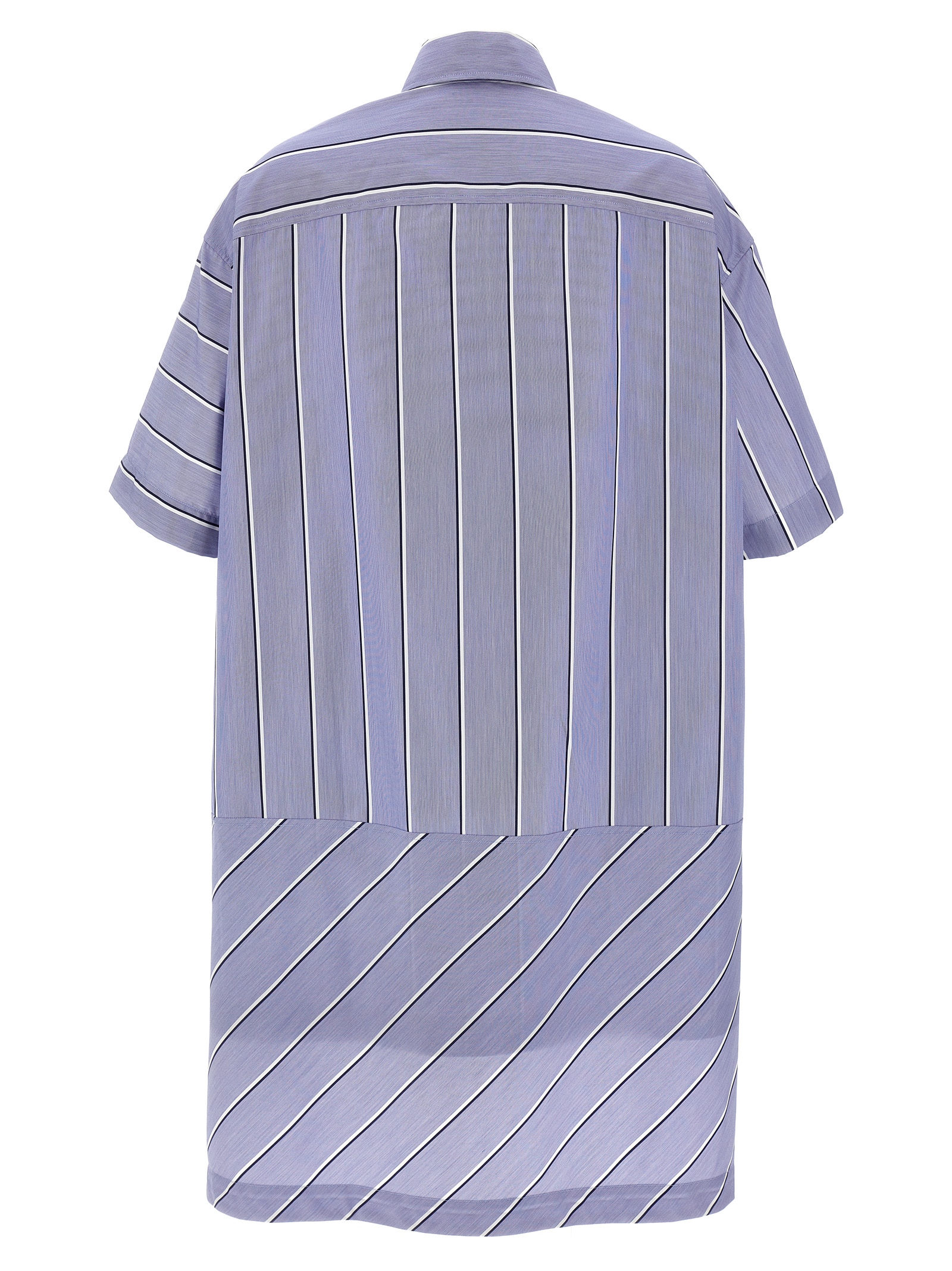Cotton shirt-style dress with patchwork construction and asymmetric hem, front Anchor JWA logo embroidery, button closure, short sleeves with dropped shoulders.