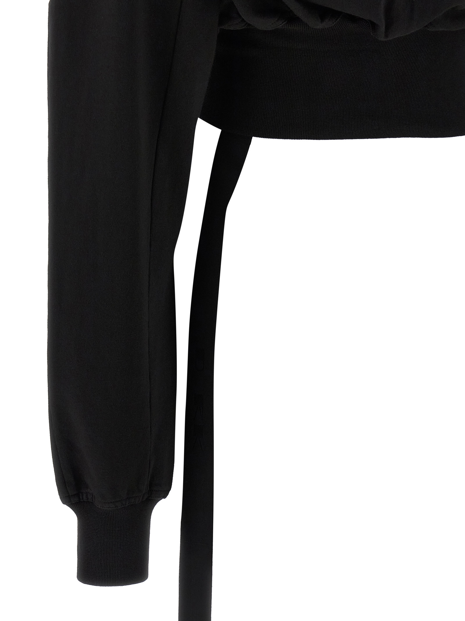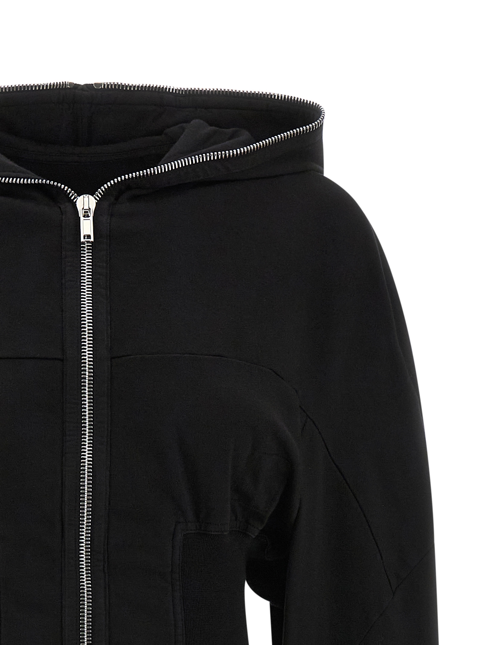 'Collage Gimp' cropped hoodie with metal zip closure on the front, long sleeves with knitted cuffs.