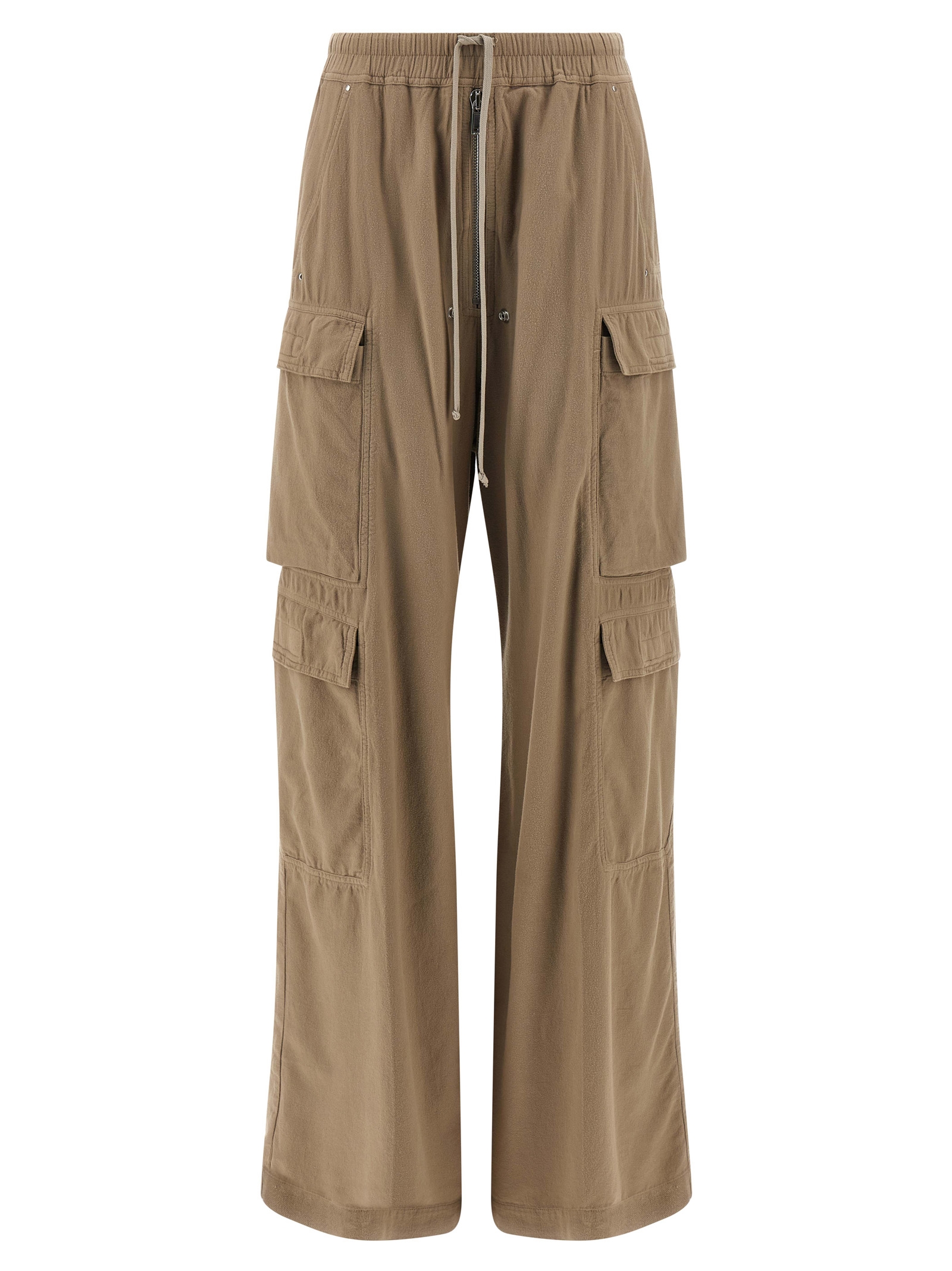 'Double Cargo Jumbo Belas' trousers in peached cotton canvas, model with low crotch and flared wide leg, elastic with adjustable drawstring at the waist, pockets, zip flap.