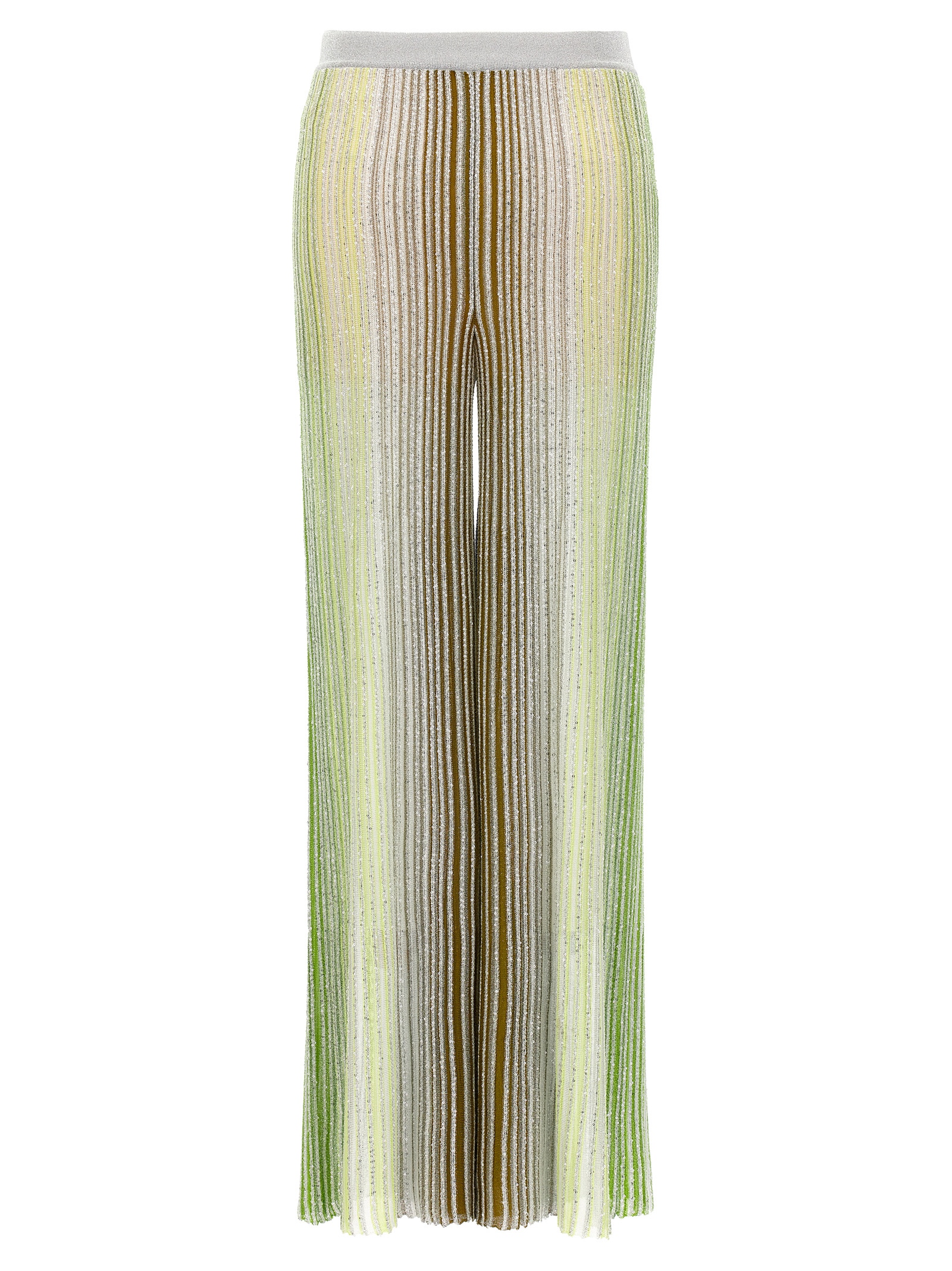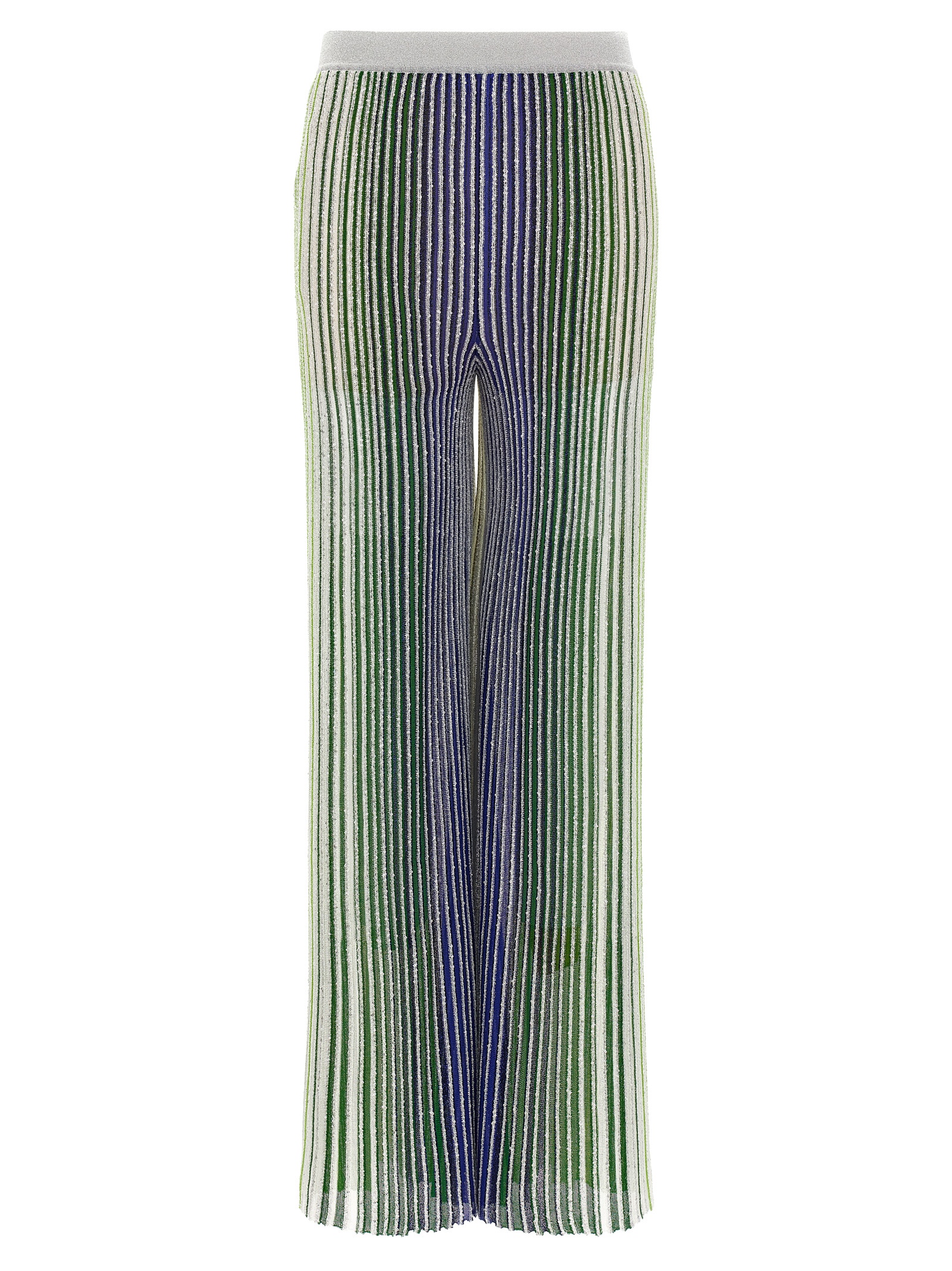 Viscose blend pants with partial stripes with sequins and lamé filaments, palazzo model, elastic waistband.