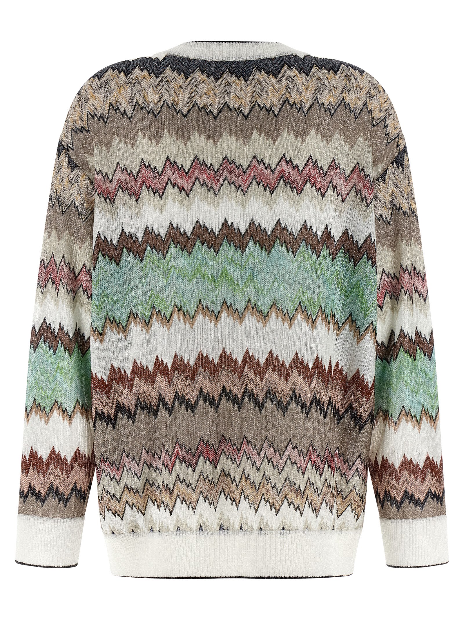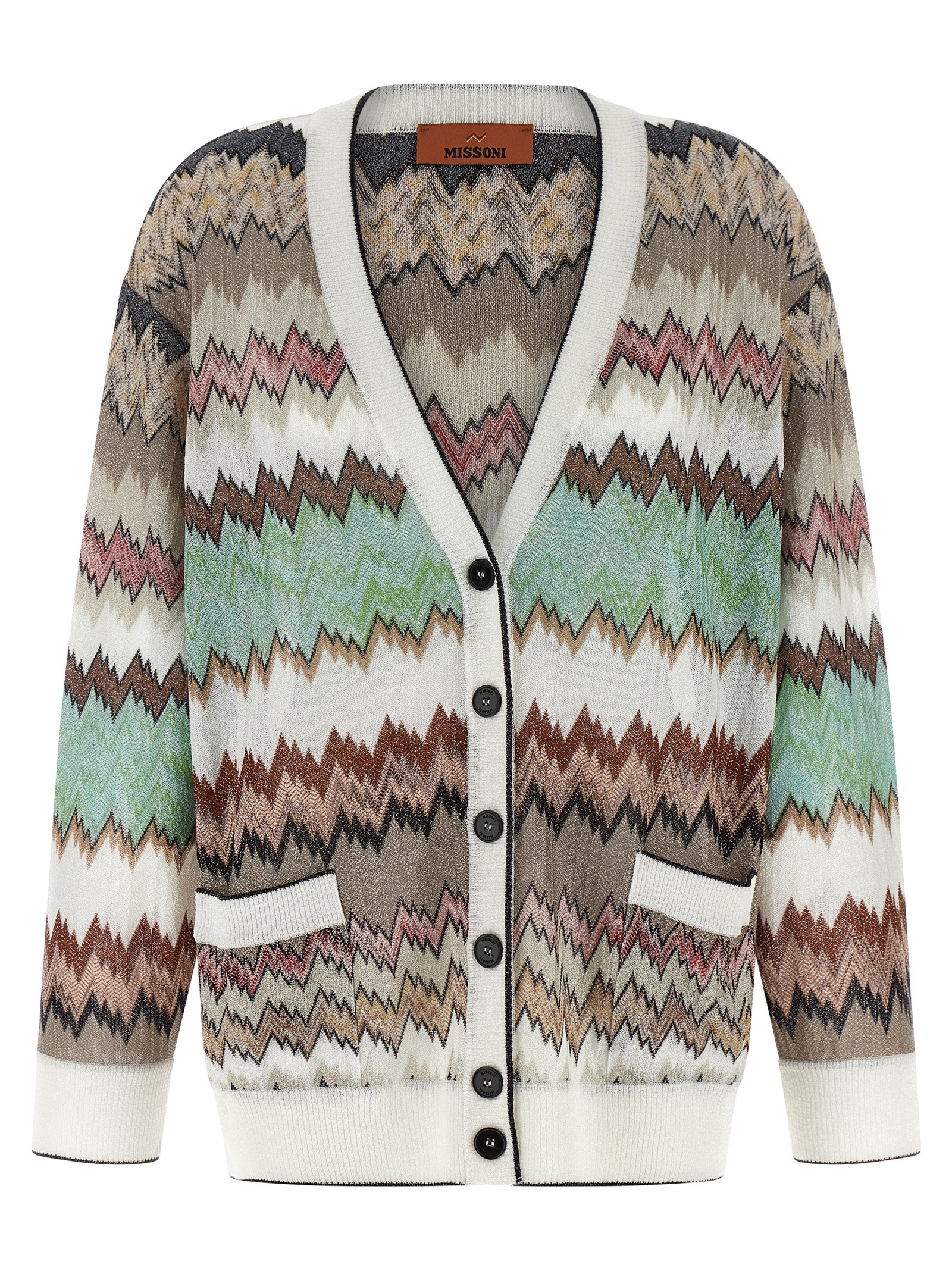 Snake raschel viscose lamé cardigan, V-neck, front button closure, pockets, long sleeves with cuffs and dropped shoulders, band on the hem.