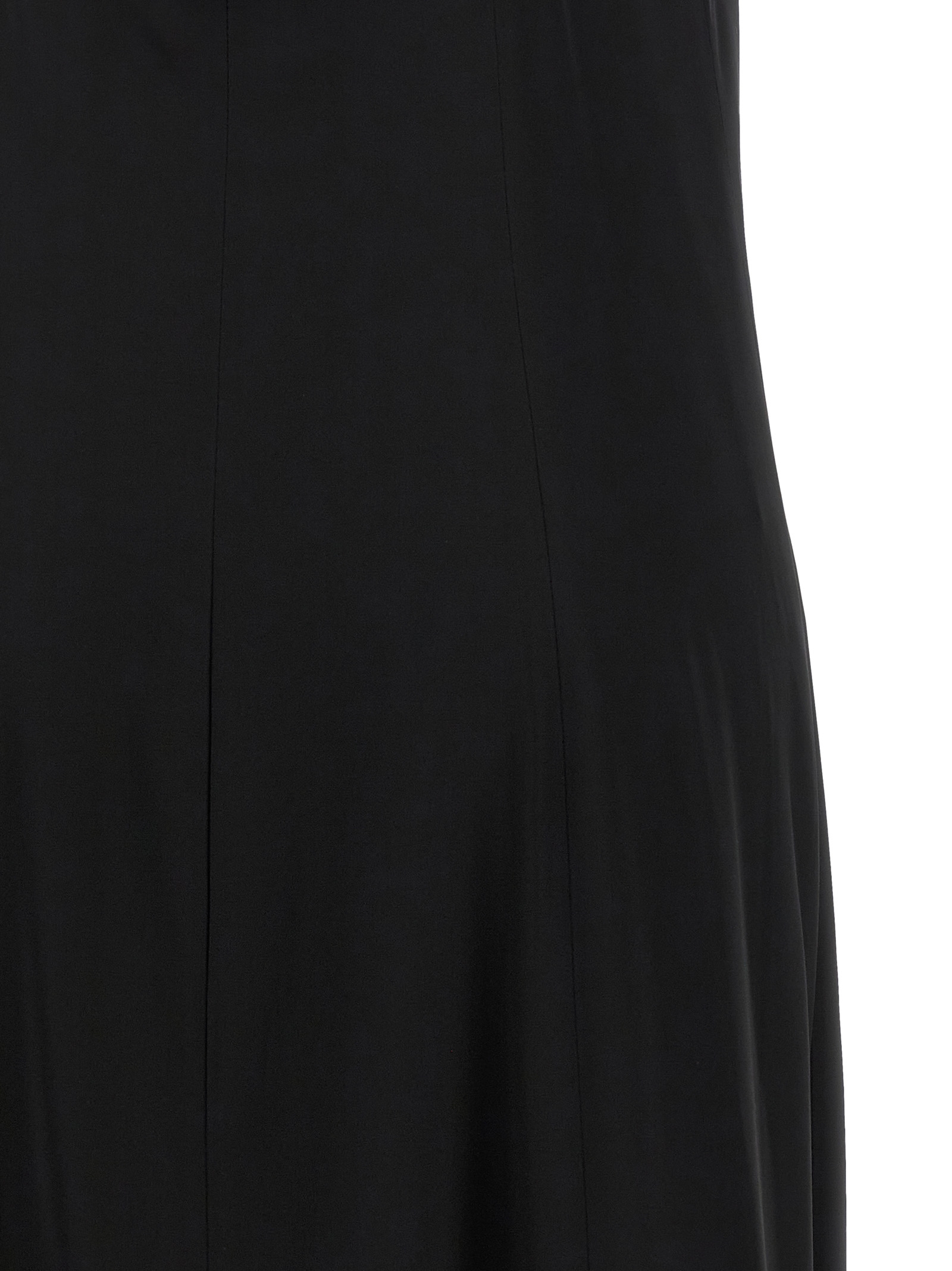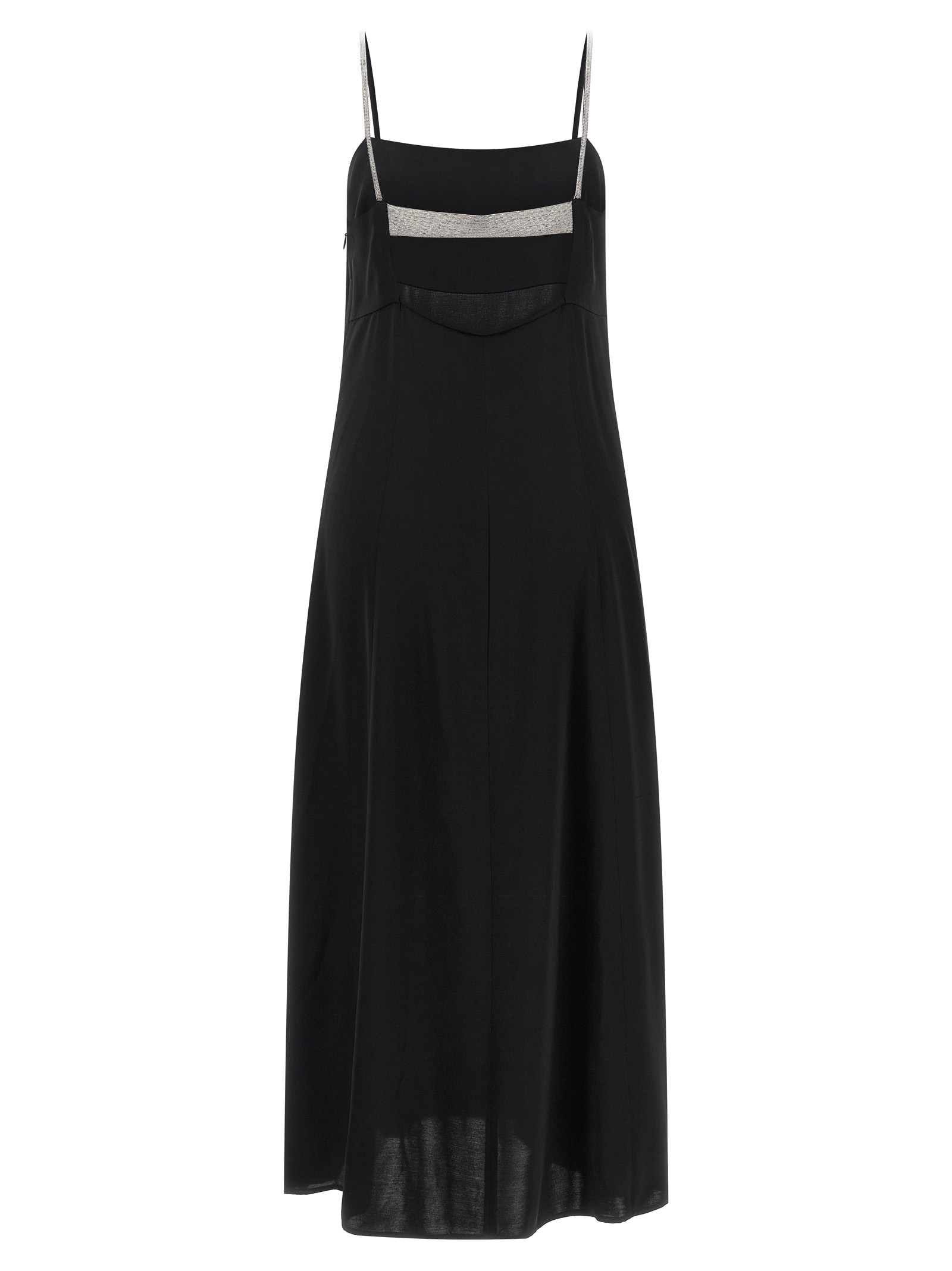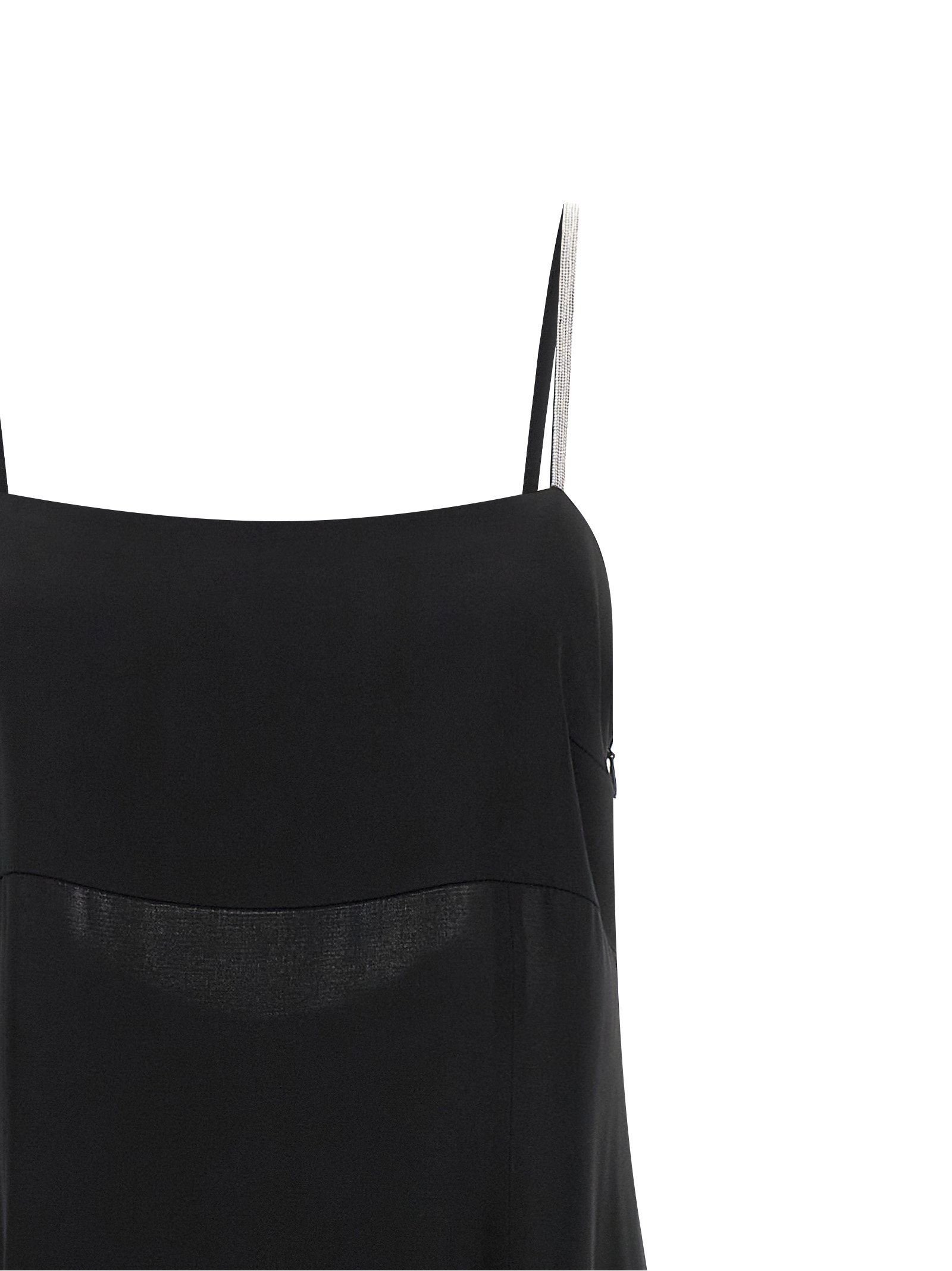 Long 'Aurea' dress in shiny satin, long model with underbust cut, side closure with hidden zip, thin straps and back band with rhinestone application detail, deep back neckline with cut-out effect.